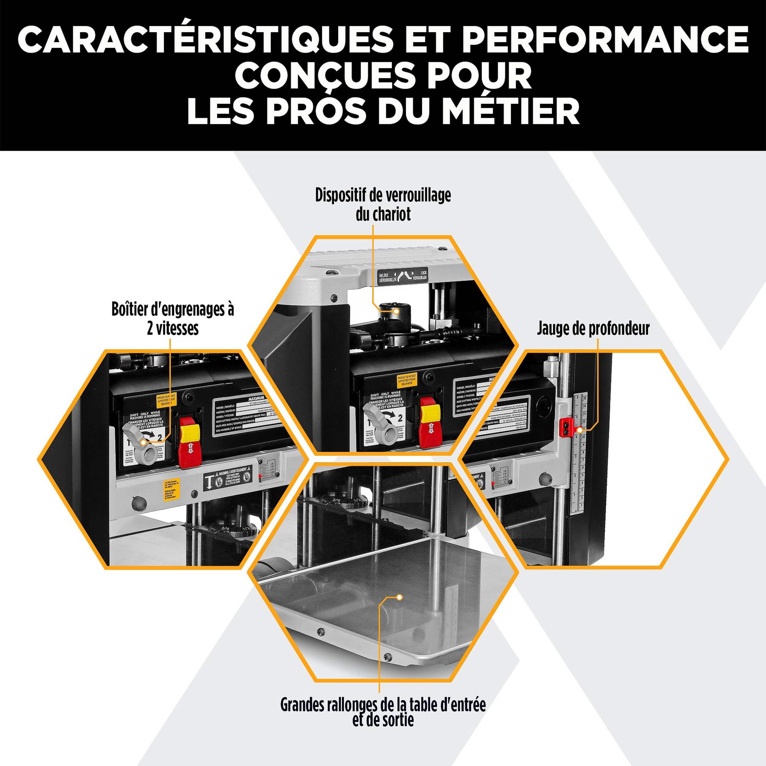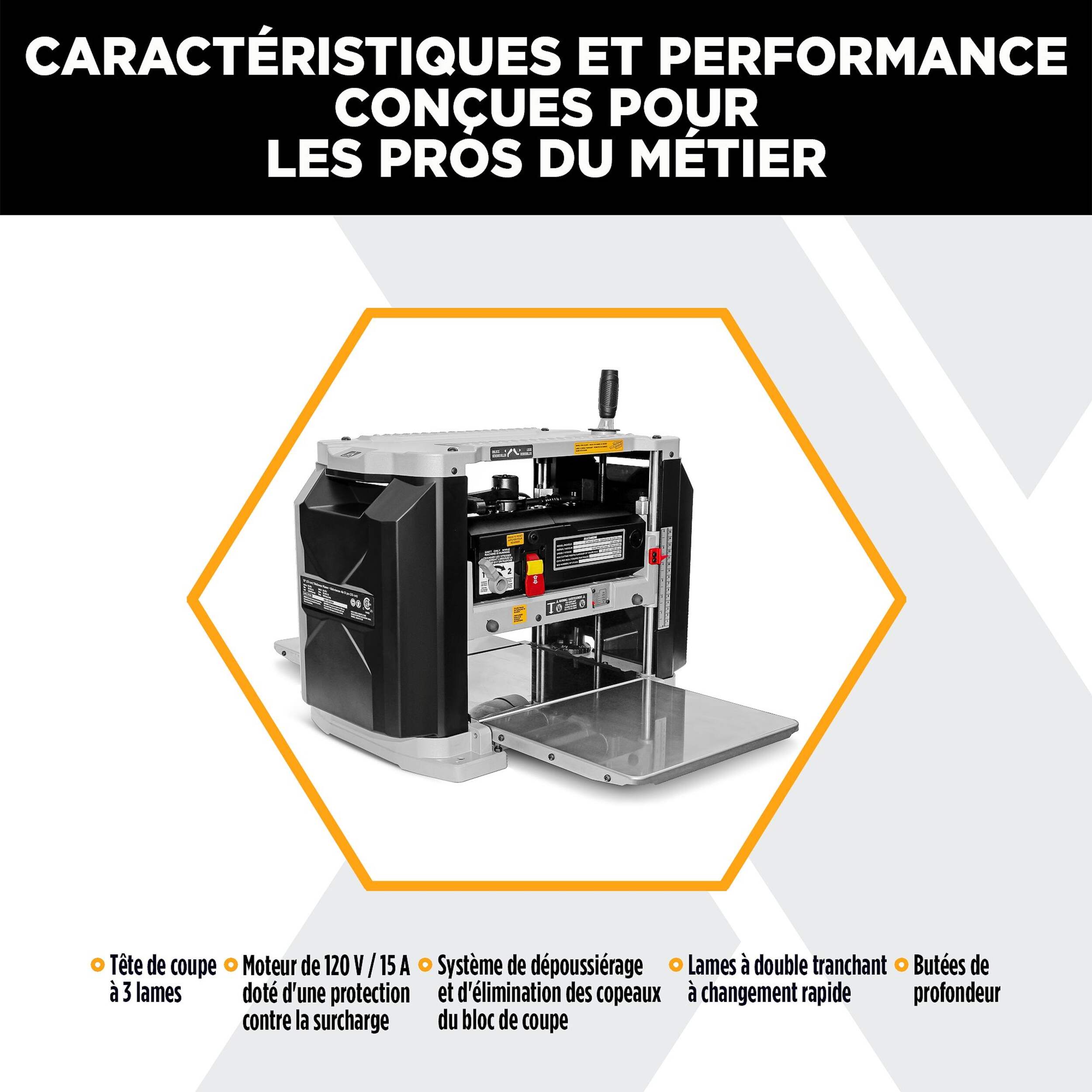 | Profondeur de rabotage (po) | 1 3/16 po |