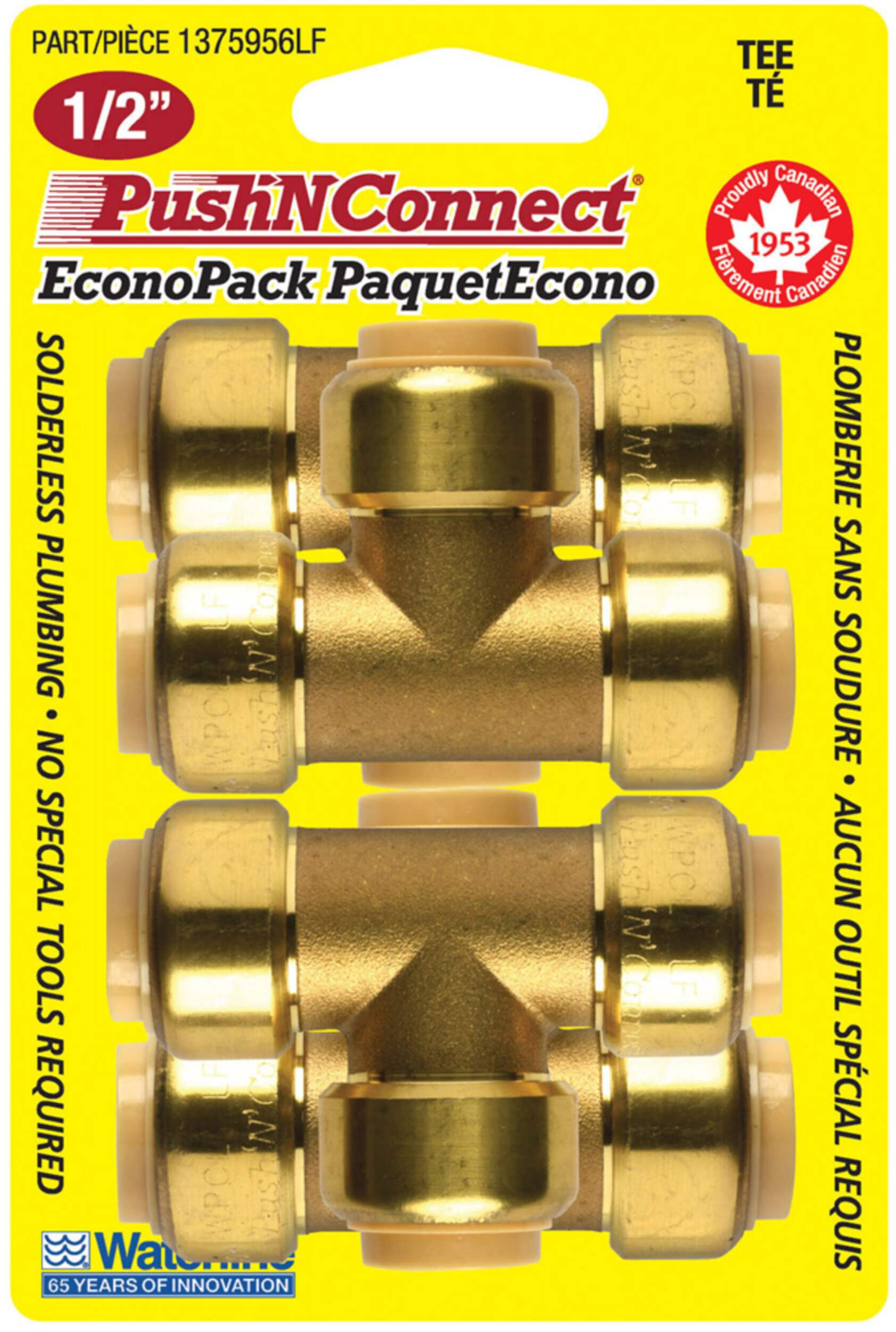 Le raccord en T Waterline Push 'N' Connect est conçu pour les professionnels et les bricoleurs à la recherche d'efficacité et de fiabilité. Ce raccord novateur offre la façon la plus rapide, la plus propre et la plus simple de joindre des tuyaux en cuivre, CPVC, PE-RT et PEX, sans outil. Il suffit d'insérer le tuyau, et les dents en acier inoxydable le maintiennent fermement, tandis que le joint torique spécialement conçu se comprime pour assurer l'étanchéité. Le raccord peut être tourné après l'assemblage, ce qui le rend idéal pour les espaces restreints. Approuvé pour les systèmes d'eau potable et de chauffage hydronique, il s'agit d'un choix de confiance pour une installation sans tracas.