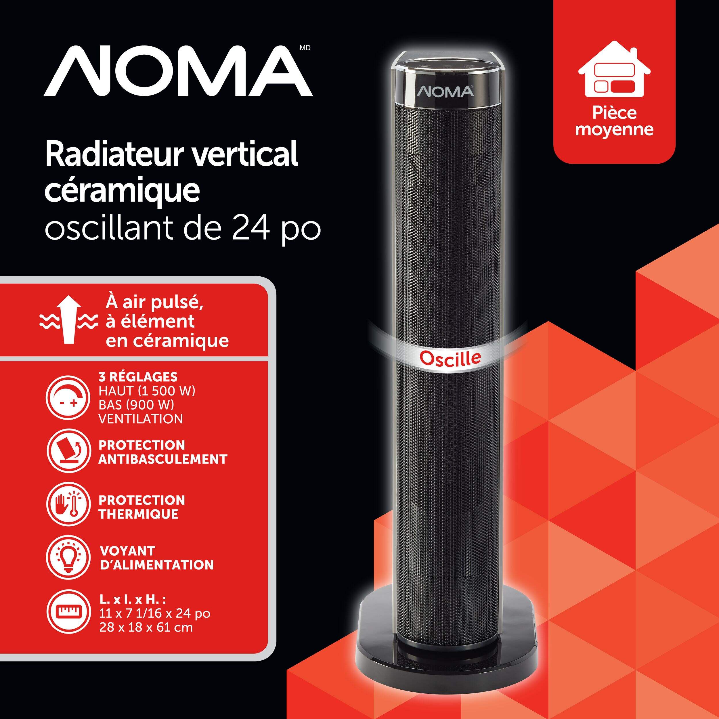 Le radiateur céramique vertical numérique NOMA est conçu avec un pulso-radiateur pour chauffer rapidement les pièces de taille moyenne jusqu'à 250 pieds carrés et fournir une chaleur personnelle lorsque vous en avez le plus besoin. Ce ventilateur de 24 po possède 2 réglages de chaleur (faible et élevé) et un modèle oscillant qui répartit uniformément une chaleur puissante dans toute la pièce. Les fonctions de sécurité intégrées en font une excellente option de chauffage pour ceux avec des animaux de compagnie et des enfants. Une poignée de transport intégrée vous permet de déplacer ce radiateur facilement d'une pièce à l'autre pour profiter d'une chaleur supplémentaire par temps froid.