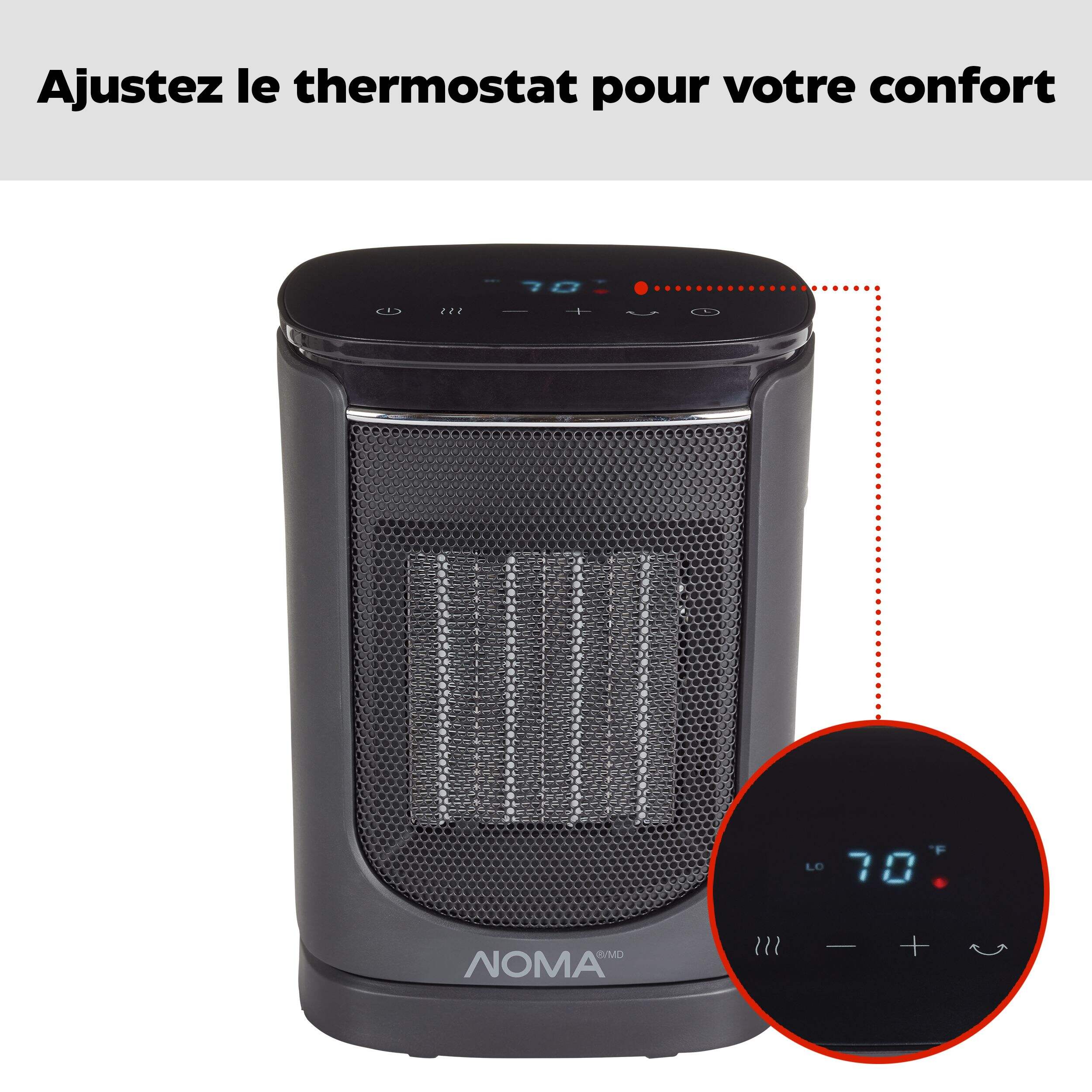 Radiateur personnel numérique oscillant NOMA en céramique avec ventilateur fournissant une chaleur rapide et puissante à votre espace
