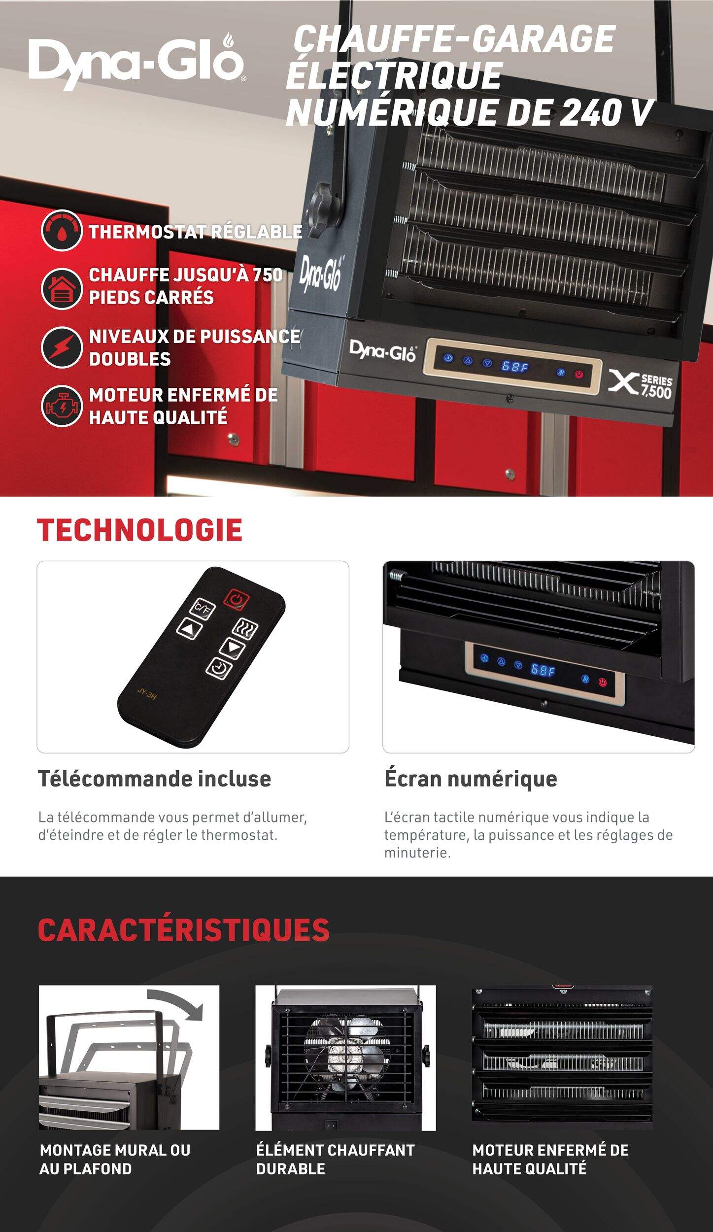 Radiateur de garage à écran DEL Dynaglo avec 24 réglages de chaleur : 50 à 95 °F (10 à 35 °C)