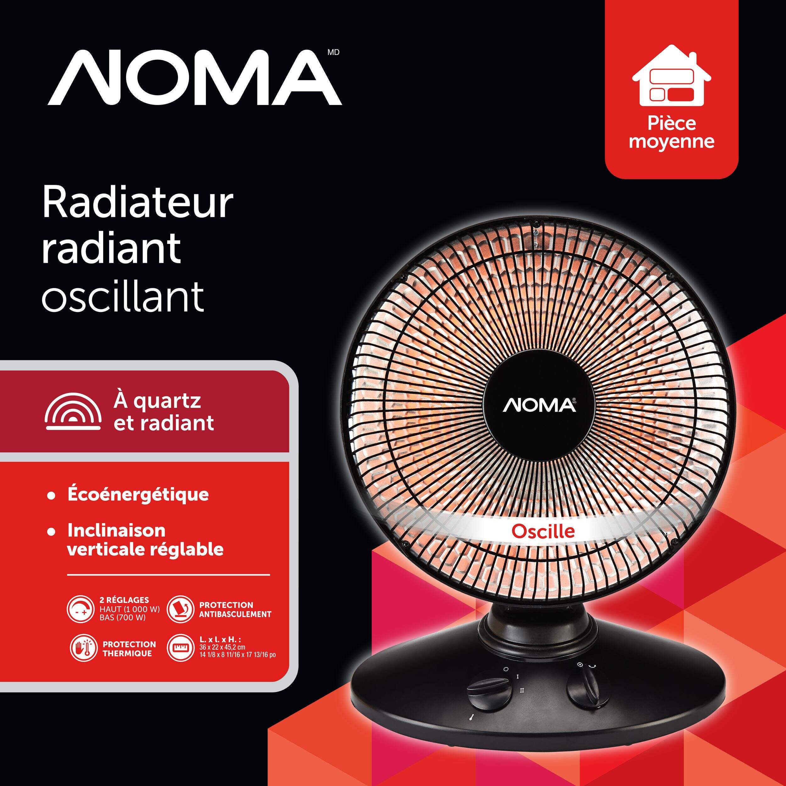 Radiateur à disque parabolique oscillant NOMA offre une chaleur rayonnante pour vous garder au chaud sans avoir à chauffer toute la pièce