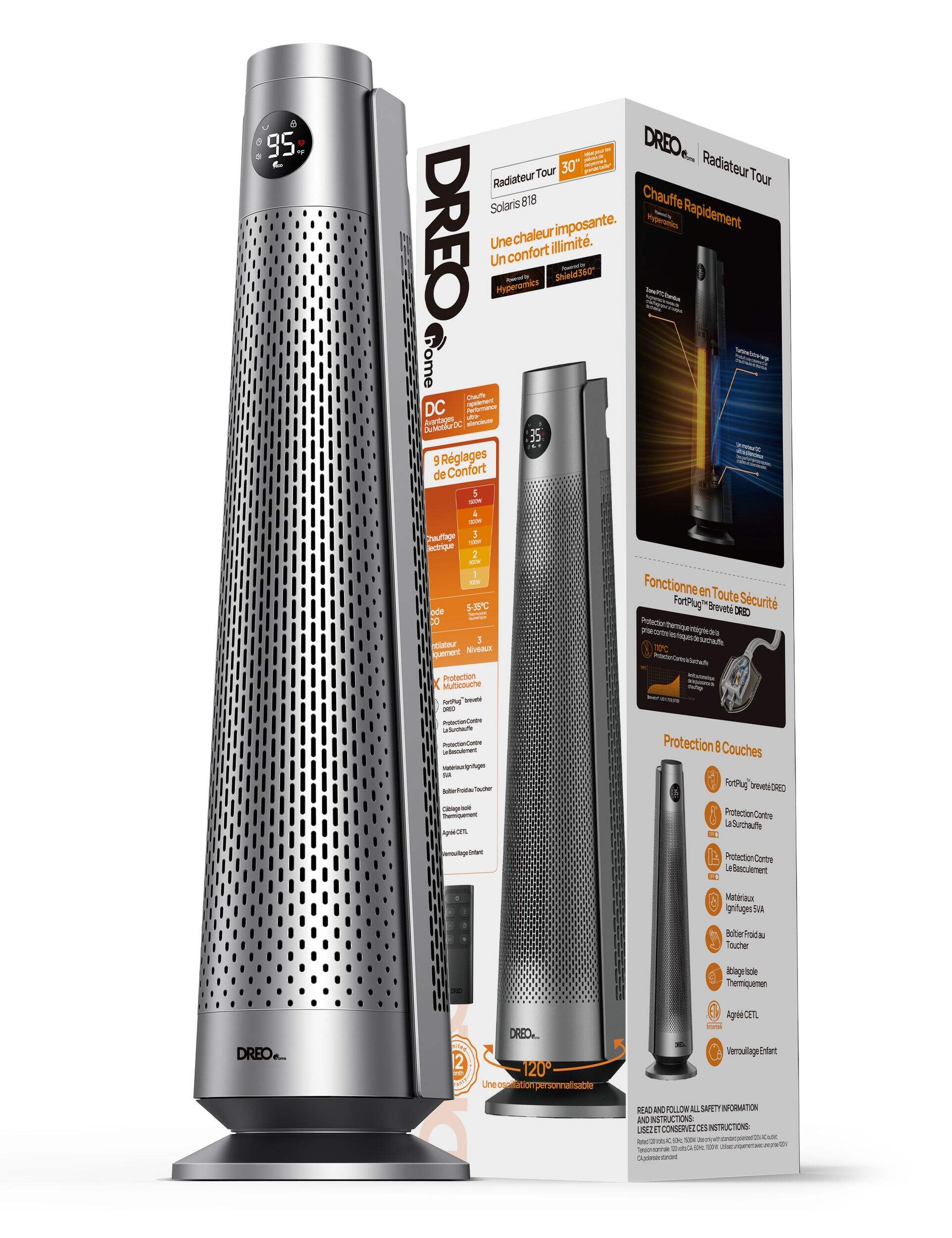 Oscillation grand-angle de 120° pour couvrir toute la pièce