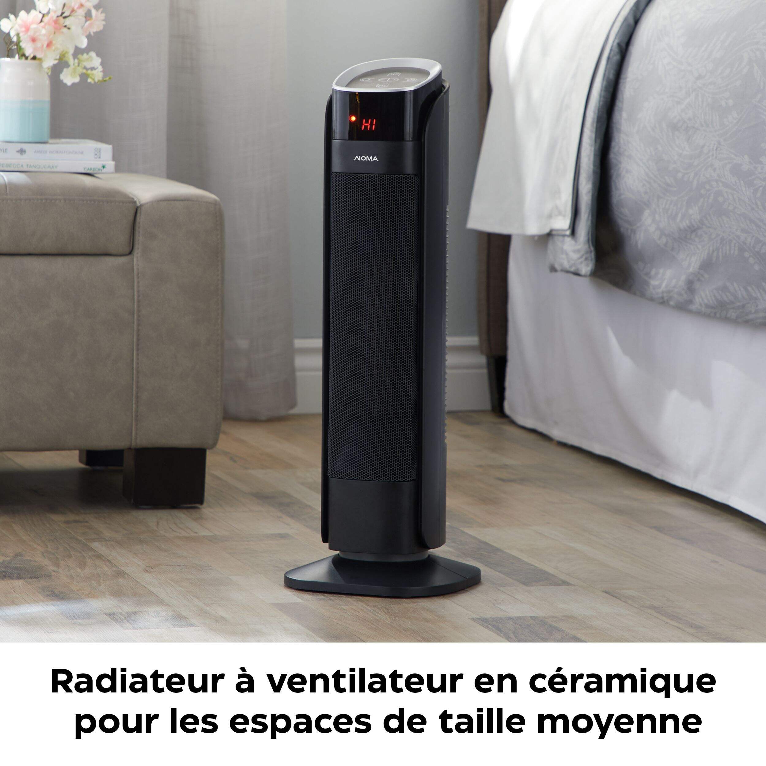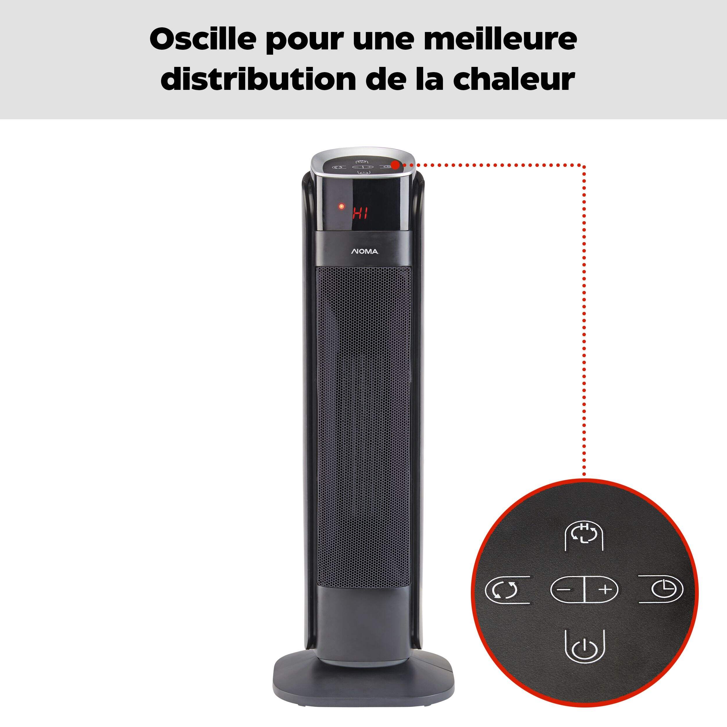 Le radiateur vertical oscillant NOMA est conçu avec un pulso-radiateur en céramique pour chauffer rapidement les pièces de taille moyenne et fournir une chaleur personnelle quand vous en avez le plus besoin. Avec 2 réglages de chauffage (bas et haut) et un modèle oscillant, ce radiateur répartit uniformément une chaleur puissante dans toute la pièce. Pour plus de sécurité autour des animaux et des enfants, ce radiateur électrique est doté d'une protection en cas de basculement. Grâce à son affichage à DEL et à son thermostat numérique réglable, vous savez toujours quels sont les réglages en cours, et la télécommande vous permet d'ajuster rapidement et commodément les réglages depuis l'autre bout de la pièce. Ce radiateur vertical oscillant est un choix fantastique pour les bureaux à domicile, les chambres, les ateliers ou tout autre endroit où vous avez besoin d'un peu de chaleur supplémentaire lors des journées froides.