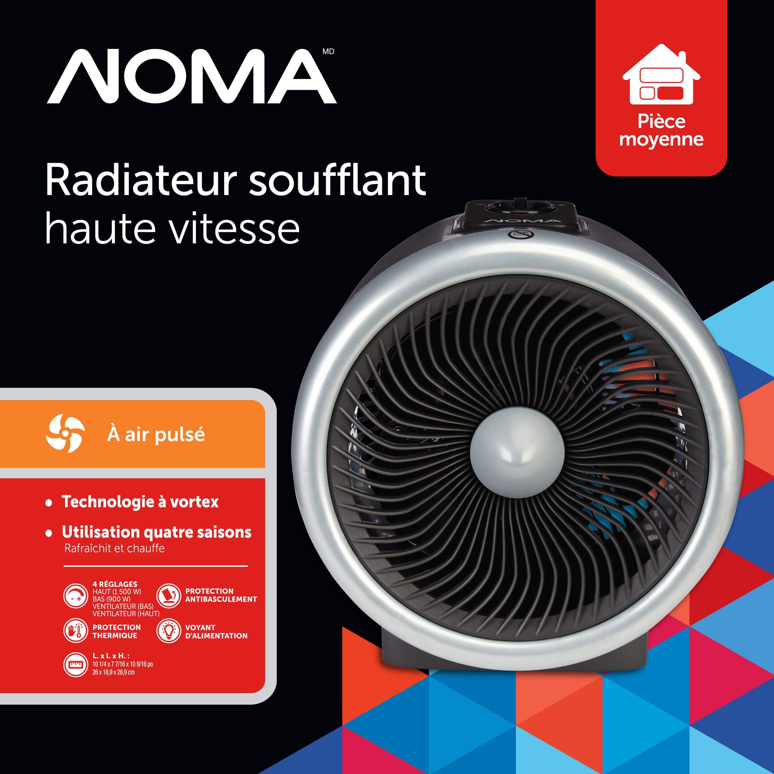 Le radiateur ventilateur NOMA Turbo offre des fonctions de refroidissement et de chauffage, ce qui vous permet de profiter d'une utilisation polyvalente toute saison à partir d'un seul appareil. Conçu pour les petits et moyens espaces, ce radiateur ventilateur est doté de réglages de chauffage et de ventilation variables, ce qui facilite le réchauffement ou le refroidissement de votre espace, selon vos besoins. Utilisez ce radiateur ventilateur portatif à la maison ou au bureau pour un confort personnel ou familial, pour le travail ou les loisirs.