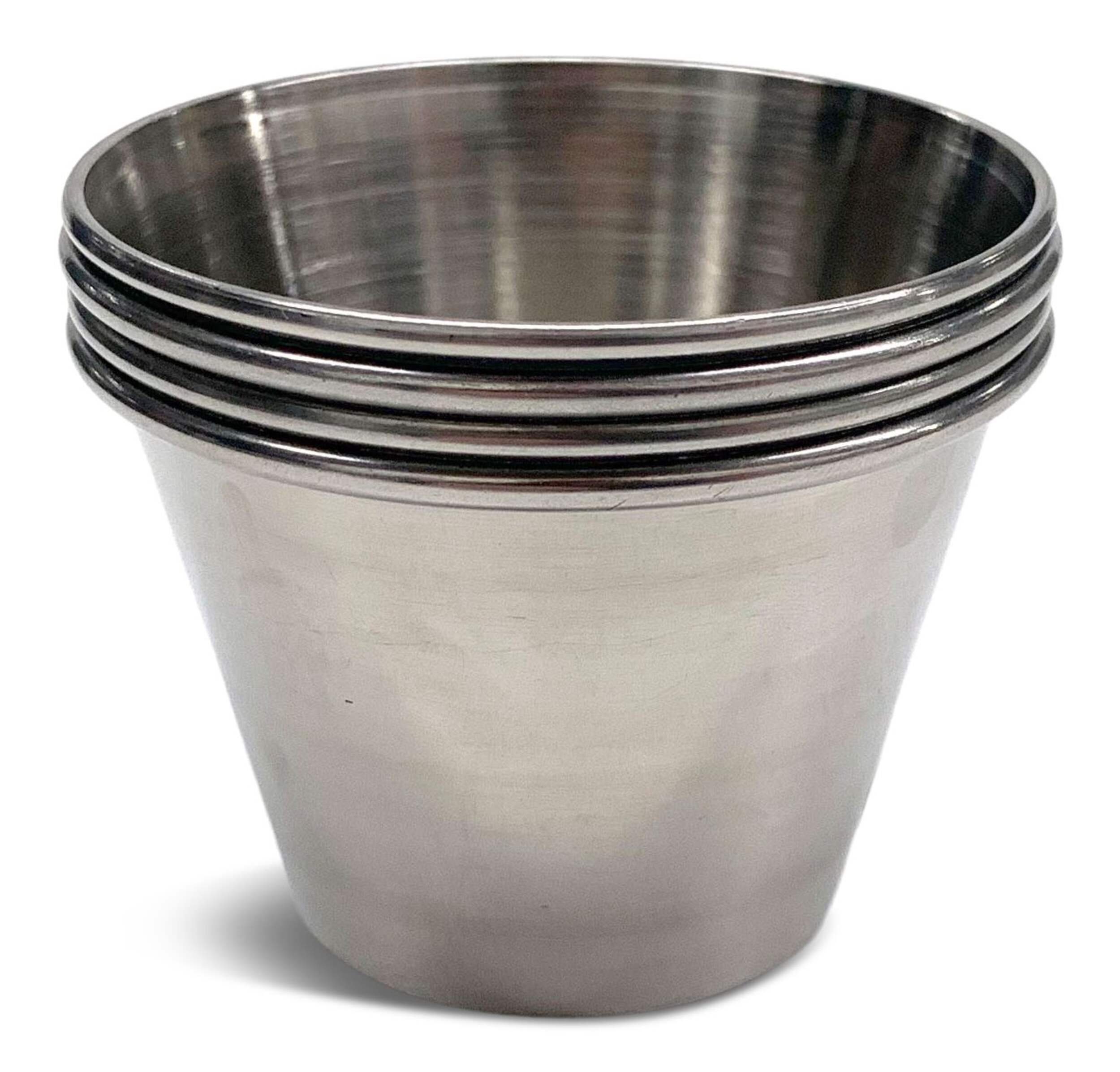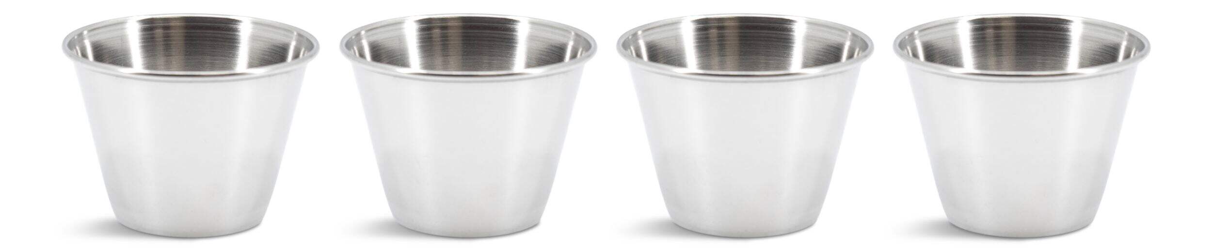 Comprend 4 ramequins en acier inoxydable d'une capacité de 2,5 oz avec bords roulés pour plus de solidité
