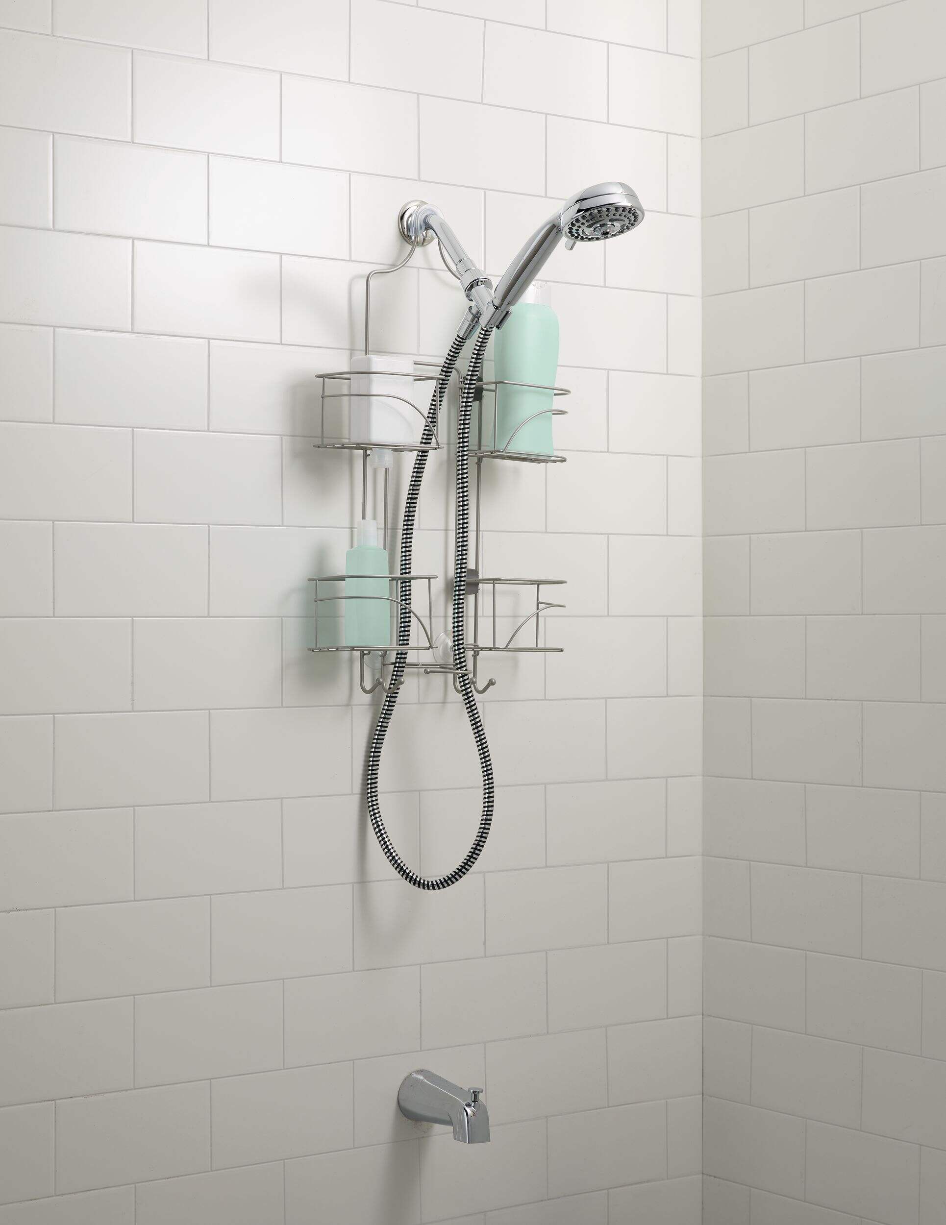 Le range-accessoires de douche extensible For Living est l'accessoire de douche par excellence. Vous pouvez facilement ranger tous vos produits de bain grâce à la hauteur des paniers profonds pour qu'aucune bouteille ne soit abandonnée dans un coin humide de la douche. Les paniers du range-accessoires de douche extensible en acier inoxydable se séparent pour accueillir les pommes de douche à main et les pommes de douche à massage sans sacrifier l'espace de rangement. Le fini nickel satiné élégant complète parfaitement la quincaillerie de la douche, et les ventouses intégrées maintiennent le range-accessoires antidérapant contre le mur.