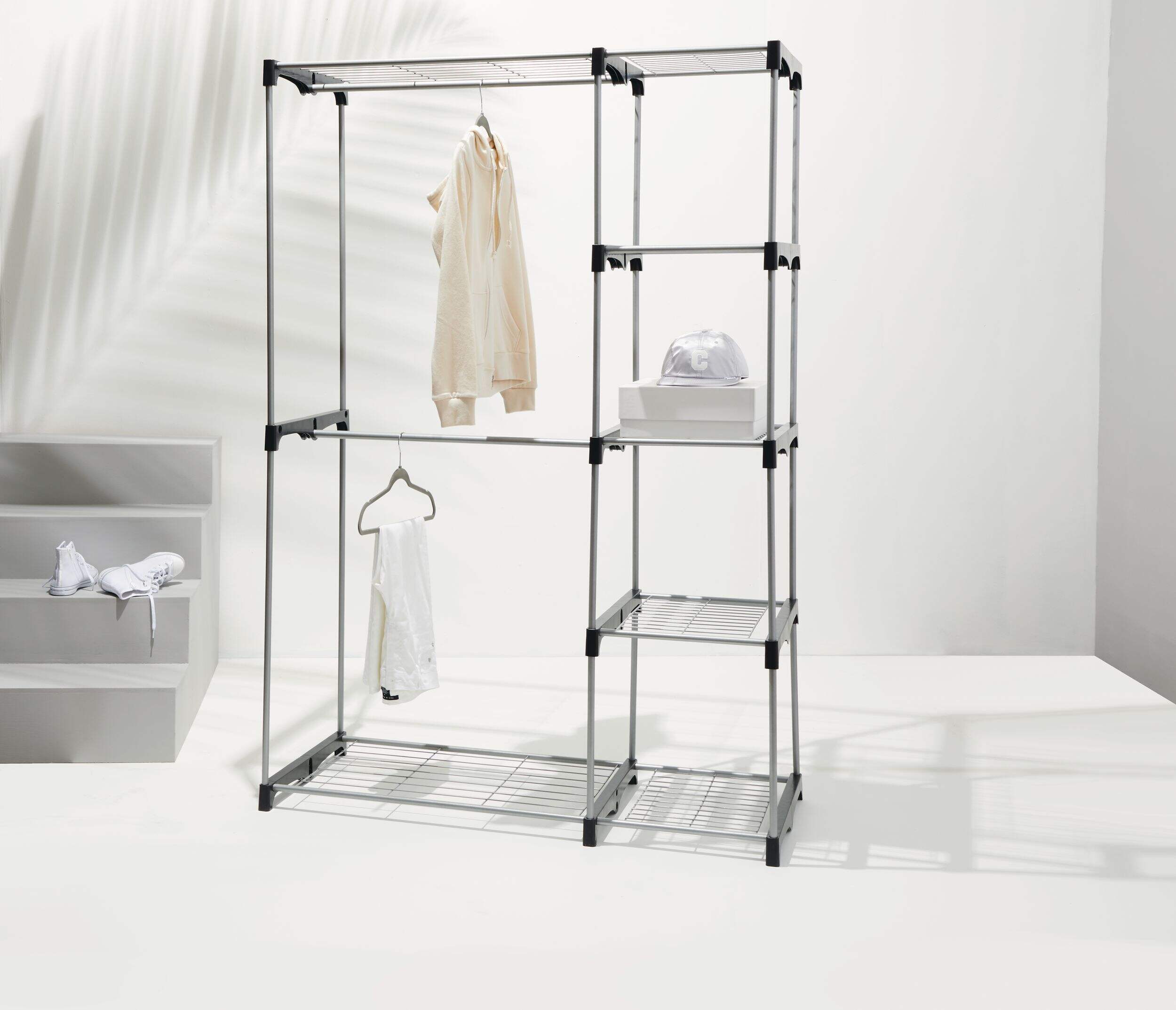 Le range-placard autoportant en métal Type A Prima constitue une solution robuste pour organiser les vêtements, les chaussures et les accessoires. Doté de 5 tablettes en fil métallique et de 2 tringles pour cintres, ce range-placard permet de ranger des chemises, des pantalons, des manteaux et des vestes. Le cadre en acier est stable et parfait pour les pièces-penderies, les chambres à coucher et les entrées. Ce range-placard autoportant vous permet de bien ranger vos vêtements à portée de main.