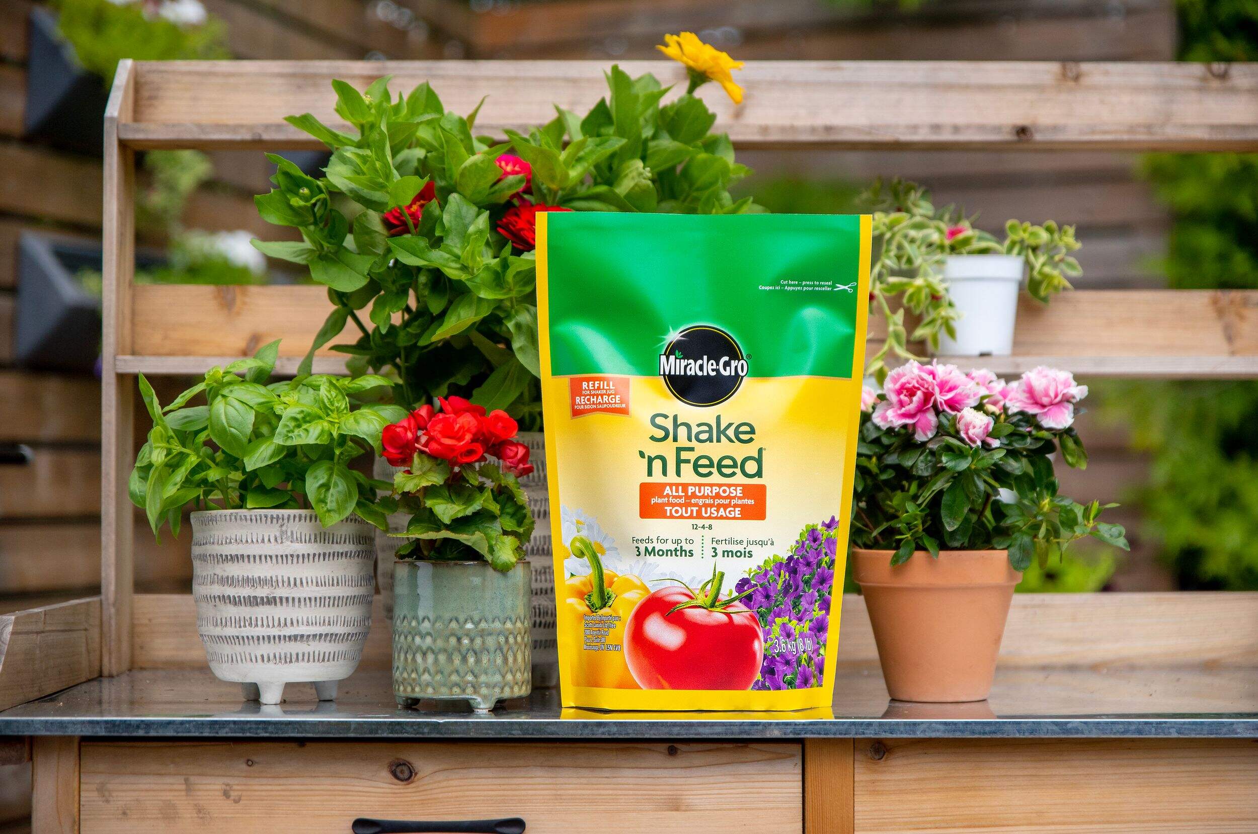 Gardez toutes vos plantes en bonne santé avec la recharge d'engrais tout usage Miracle-GroMD Shake N Feed, un moyen rapide et facile de nourrir les plantes. Il suffit de répandre cet engrais nutritif uniformément sur le sol, de l'incorporer et de commencer à arroser pour nourrir les plantes jusqu'à 3 mois. Avec tous les éléments nutritifs essentiels pour des plantes plus fortes, vigoureuses et productives, cet engrais tout usage de qualité est idéal pour toutes vos plantes en terre et en pot.