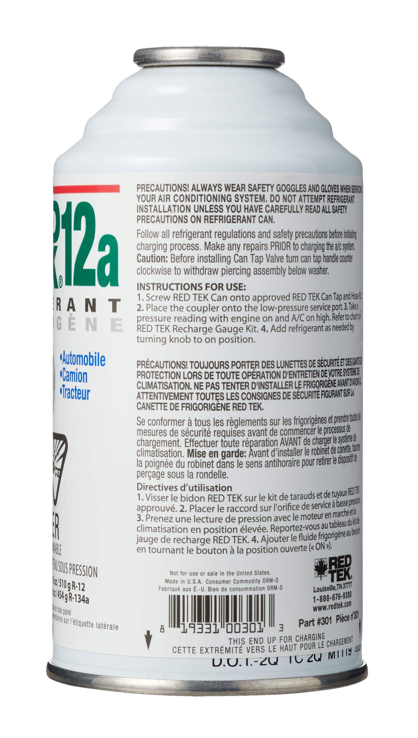 RED TEK 12a est un frigorigène écologique et économique à base d'hydrocarbures qui est naturel à 100 % organique, n'appauvrit pas la couche d'ozone et ne contribue pas au réchauffement climatique. RED TEK 12a est un frigorigène de rechange à changer soi-même conçu exclusivement pour les véhicules équipés à l'origine du frigorigène R134a et R-12. RED TEK 12a offre des propriétés de refroidissement et des performances améliorées par rapport aux R134a et R-12.