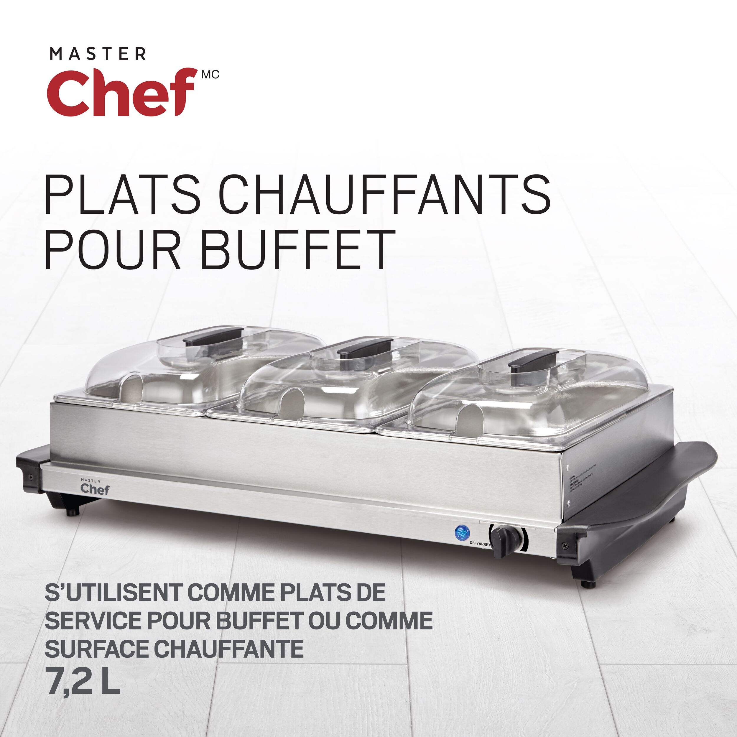 Le buffet MASTER Chef garde votre repas au chaud et prêt à servir. Doté de trois plats de réchaud en acier inoxydable, ce buffet à 3 niveaux offre assez d'espace pour accueillir votre plat principal et deux plats d'accompagnement. En acier inoxydable pour une durabilité accrue et une apparence élégante, ce réchaud de table peut être utilisé pour contenir des recettes liquides et solides, ce qui vous permet de servir des rôtis, des légumes, des plats de pâtes, des soupes, des sauces, des hors-d'oeuvre et plus encore.