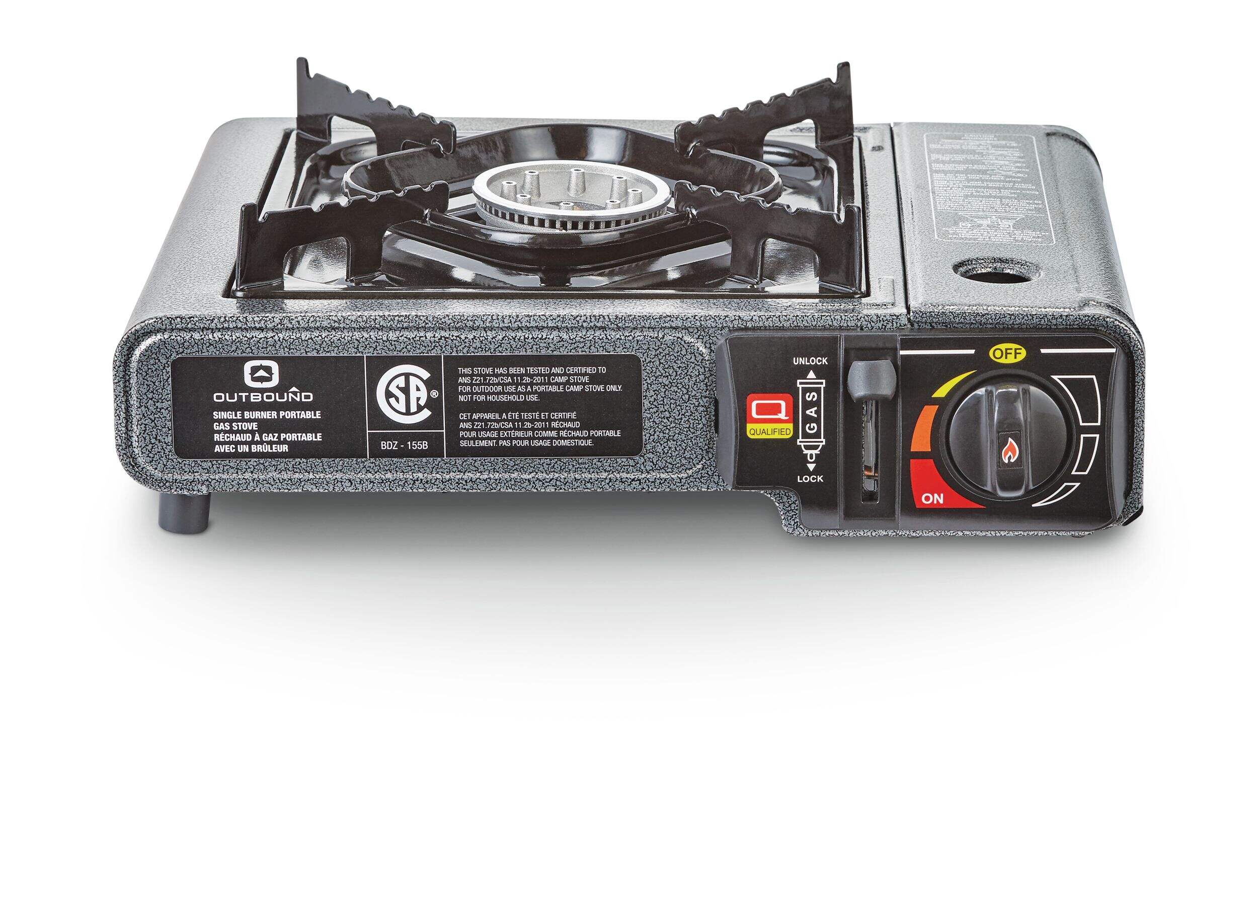 Lorsqu'un brûleur est suffisant, ce réchaud au butane Outbound est l'accessoire de cuisson idéal pour le camping, les excursions de jour et les fêtes d'avant match. Avec ses 8 000 BTU de chaleur réglable, ce poêle d'extérieur portatif est doté d'un revêtement émaillé robuste pour une meilleure durabilité et une base large pour plus de stabilité. Le profil mince et compact facilite le rangement et le transport dans l'étui léger inclus.