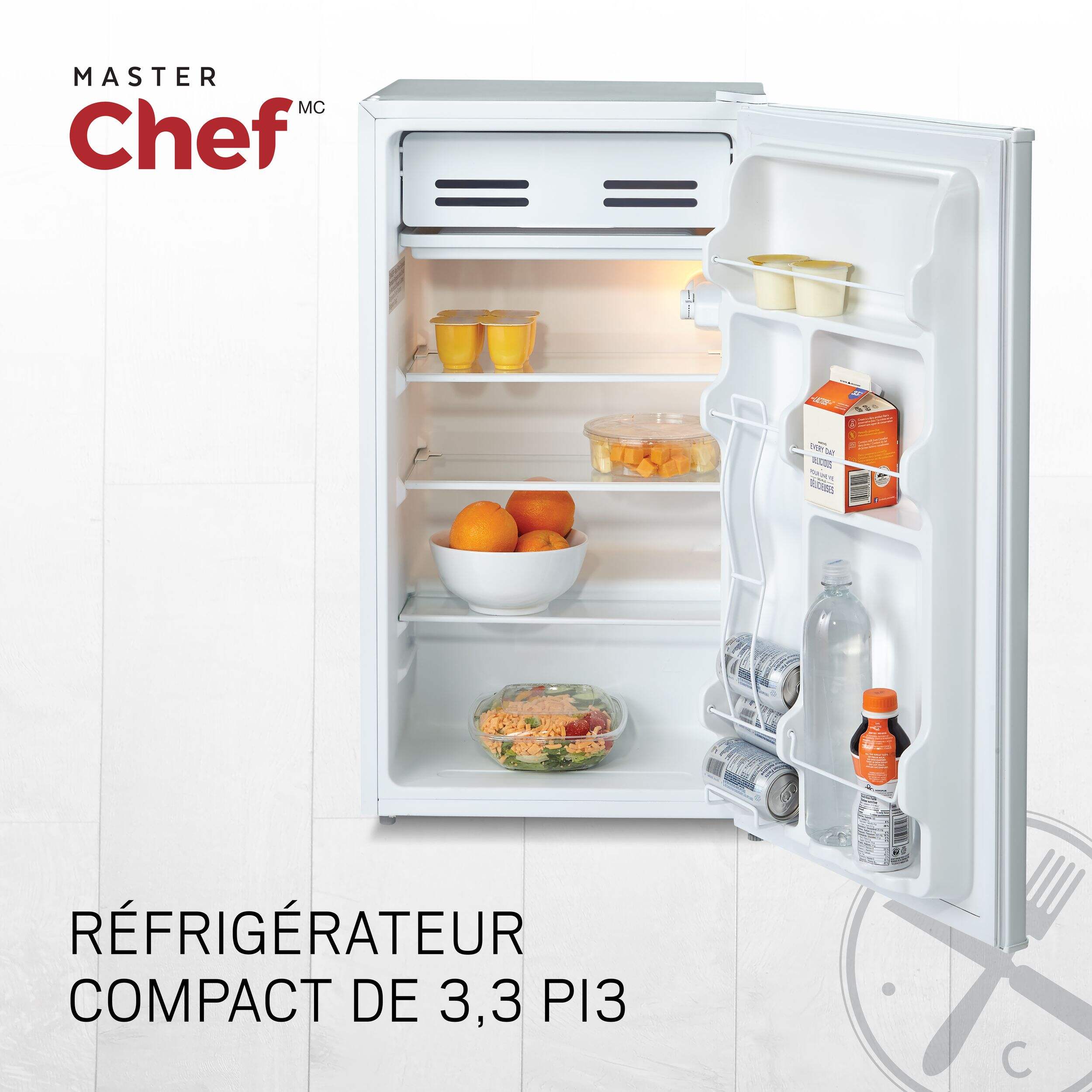 Réfrigérateur compact MASTER Chef Energy Star avec congélateur interne et porte réversible pour chambre d’étudiant/chambre à coucher de 3,3 pi³, blanc