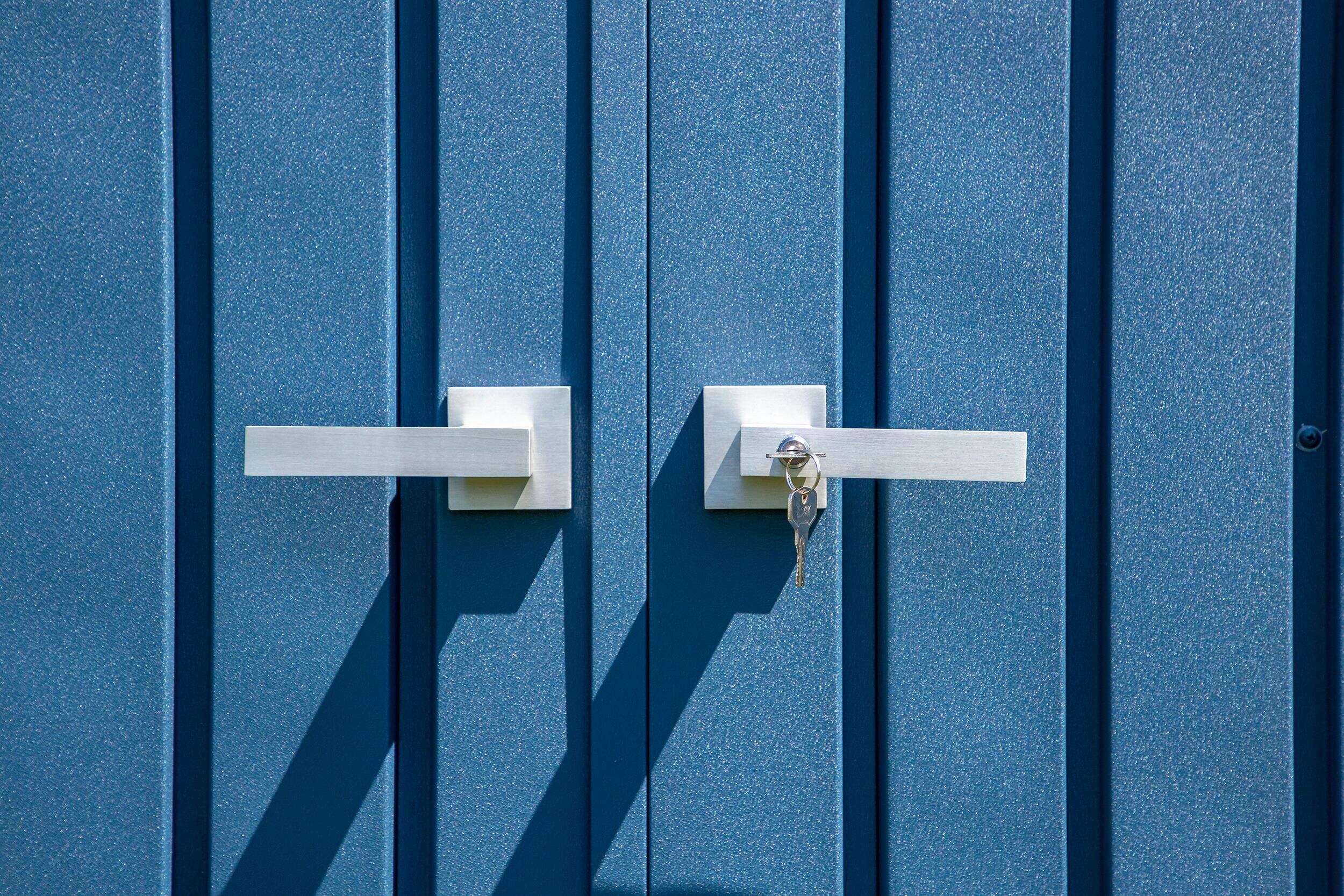Portes battantes larges, renforcées et robustes dotées d'une poignée carrée en nickel brossé avec un cadenas à clé pour une protection accrue