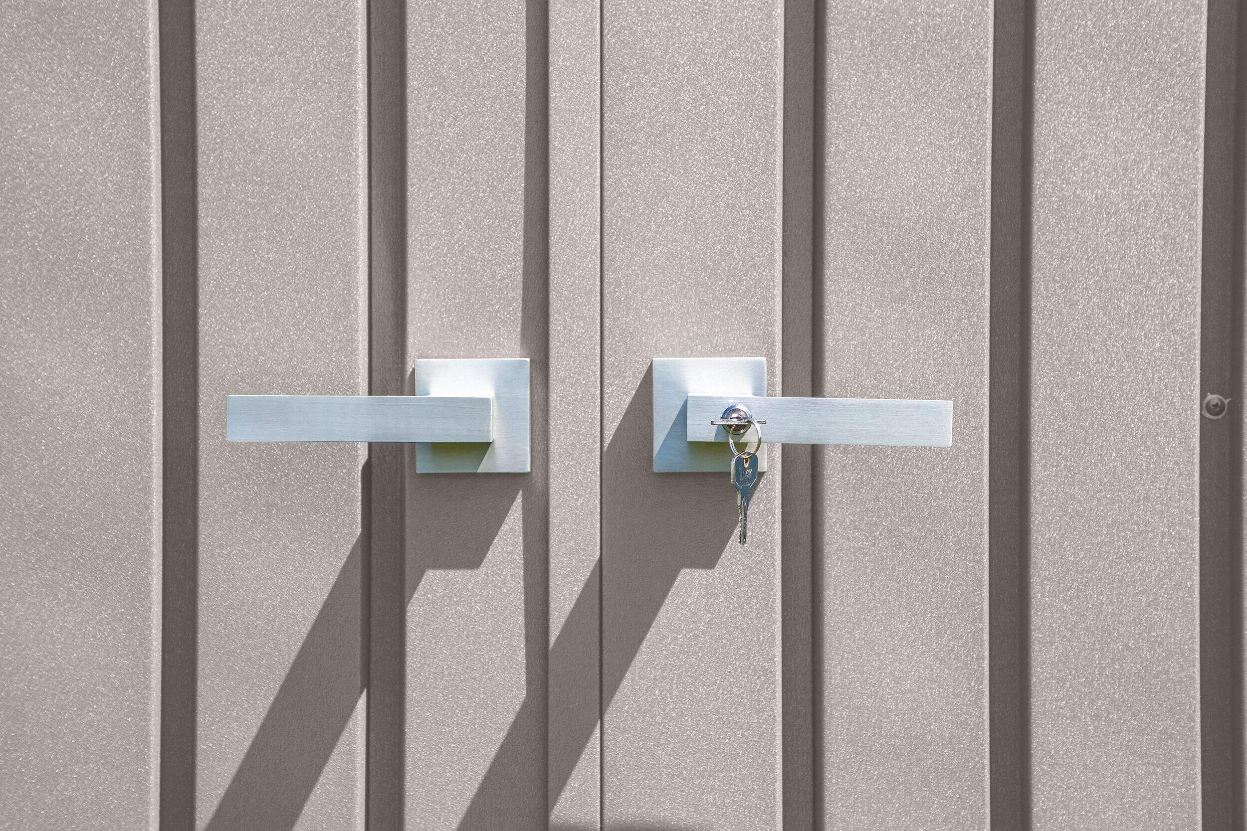 Portes battantes larges, renforcées et robustes dotées d'une poignée carrée en nickel brossé avec un cadenas à clé pour une protection accrue