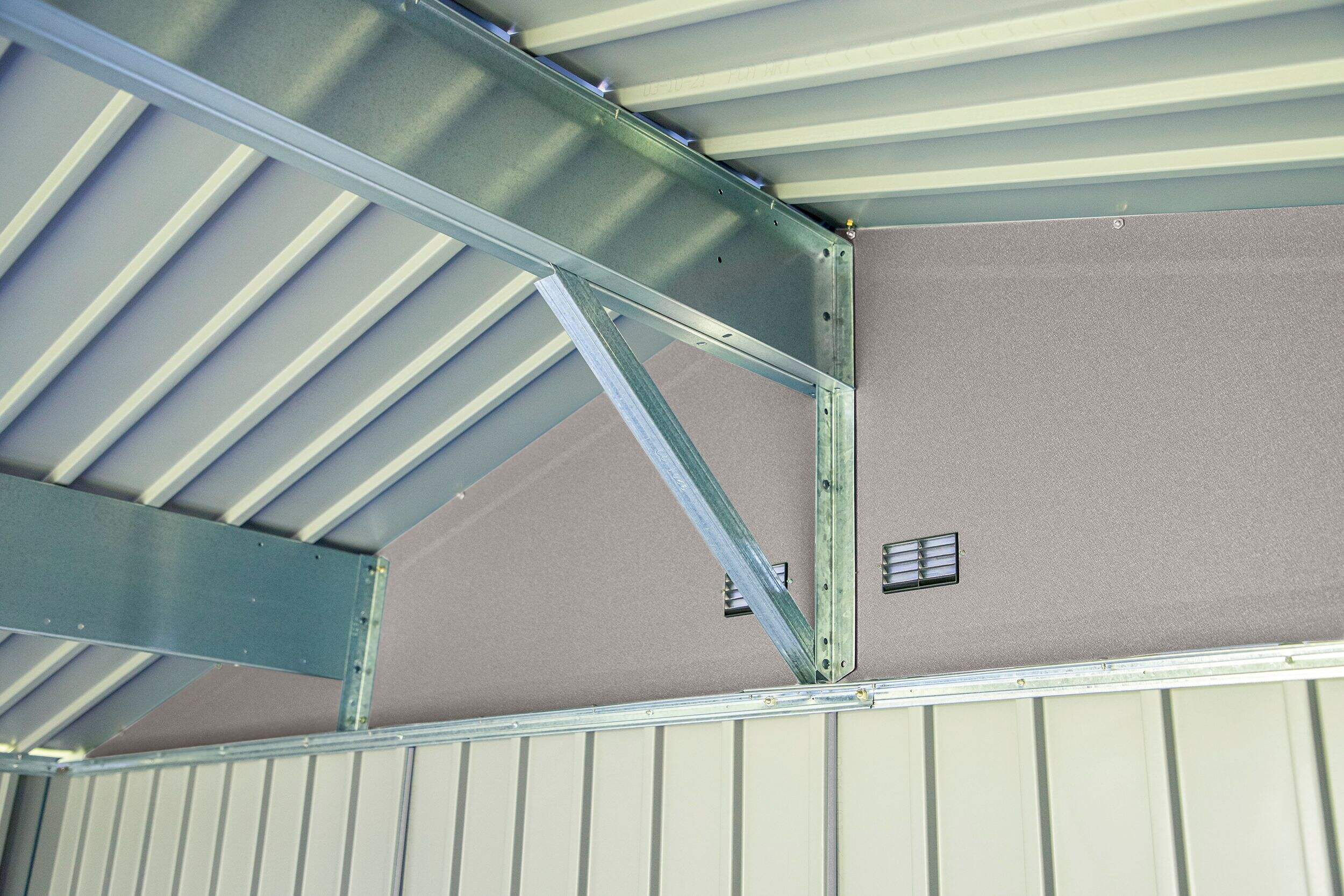 Plus d'espace en hauteur là où les murs rencontrent le toit pour faciliter le déplacement dans toute la remise