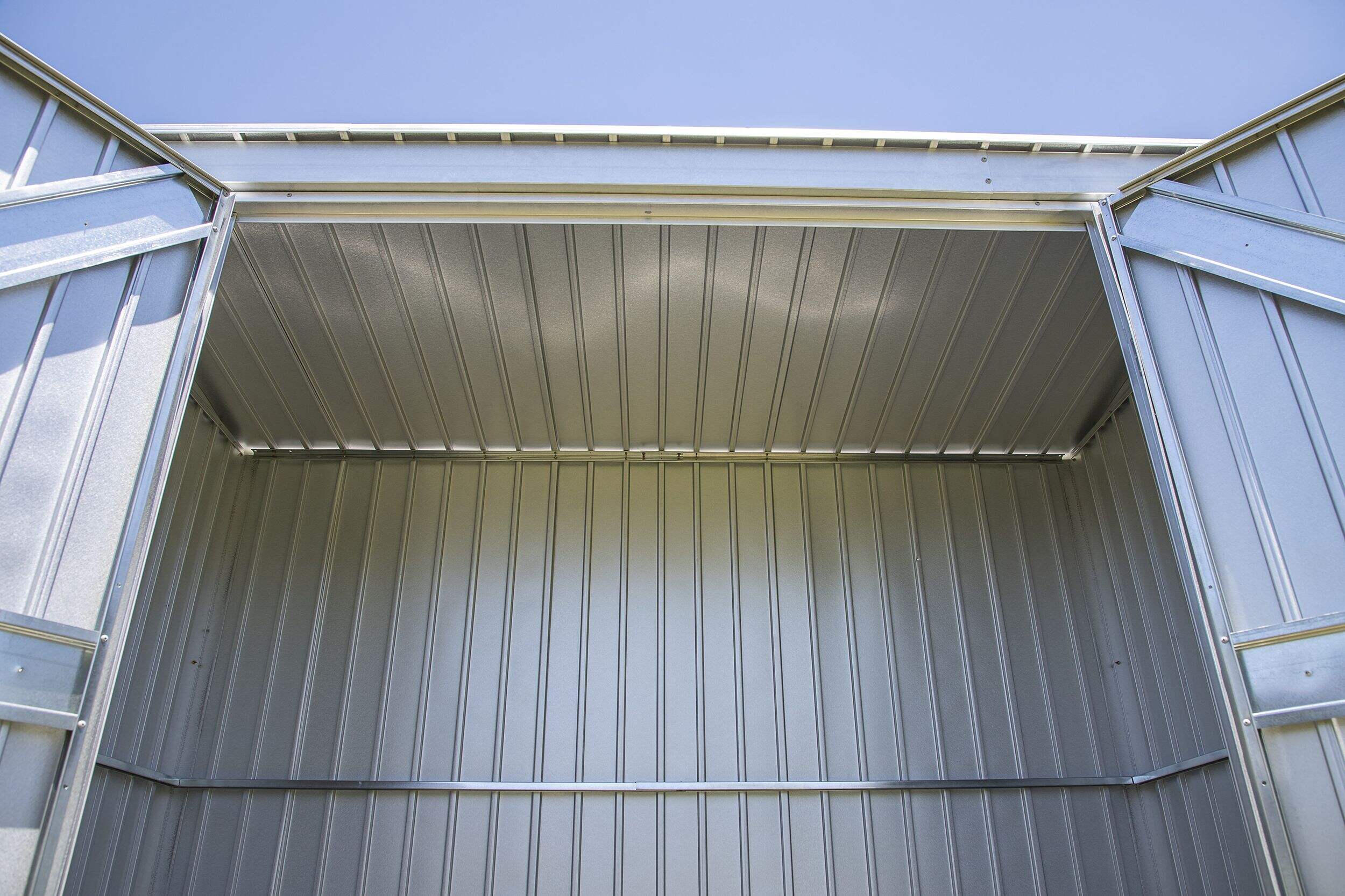 Plus d'espace en hauteur là où les murs rencontrent le toit pour faciliter le déplacement dans toute la remise