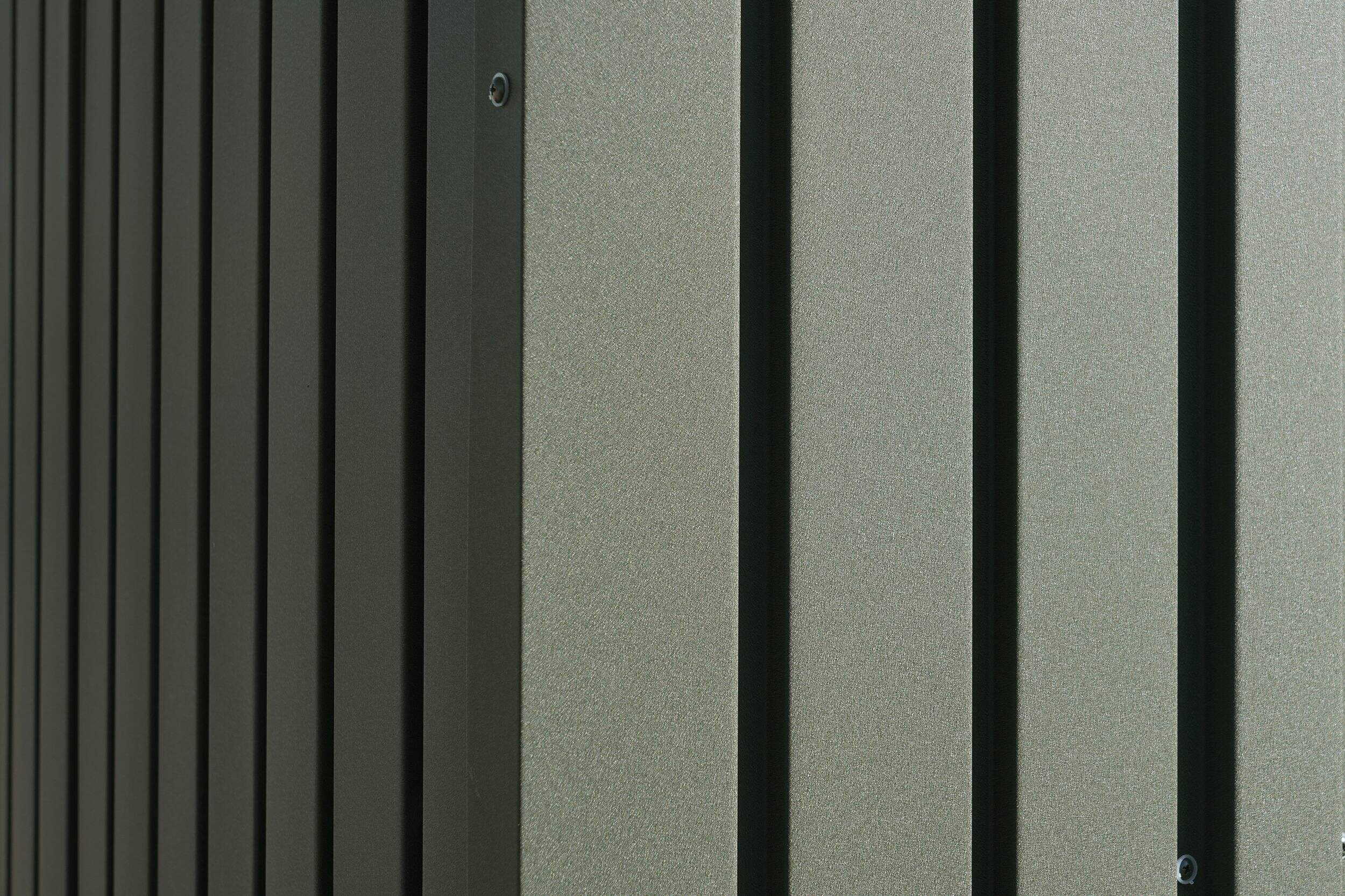 Remise dotée de panneaux muraux carrés contemporains en acier pour une allure moderne et épurée