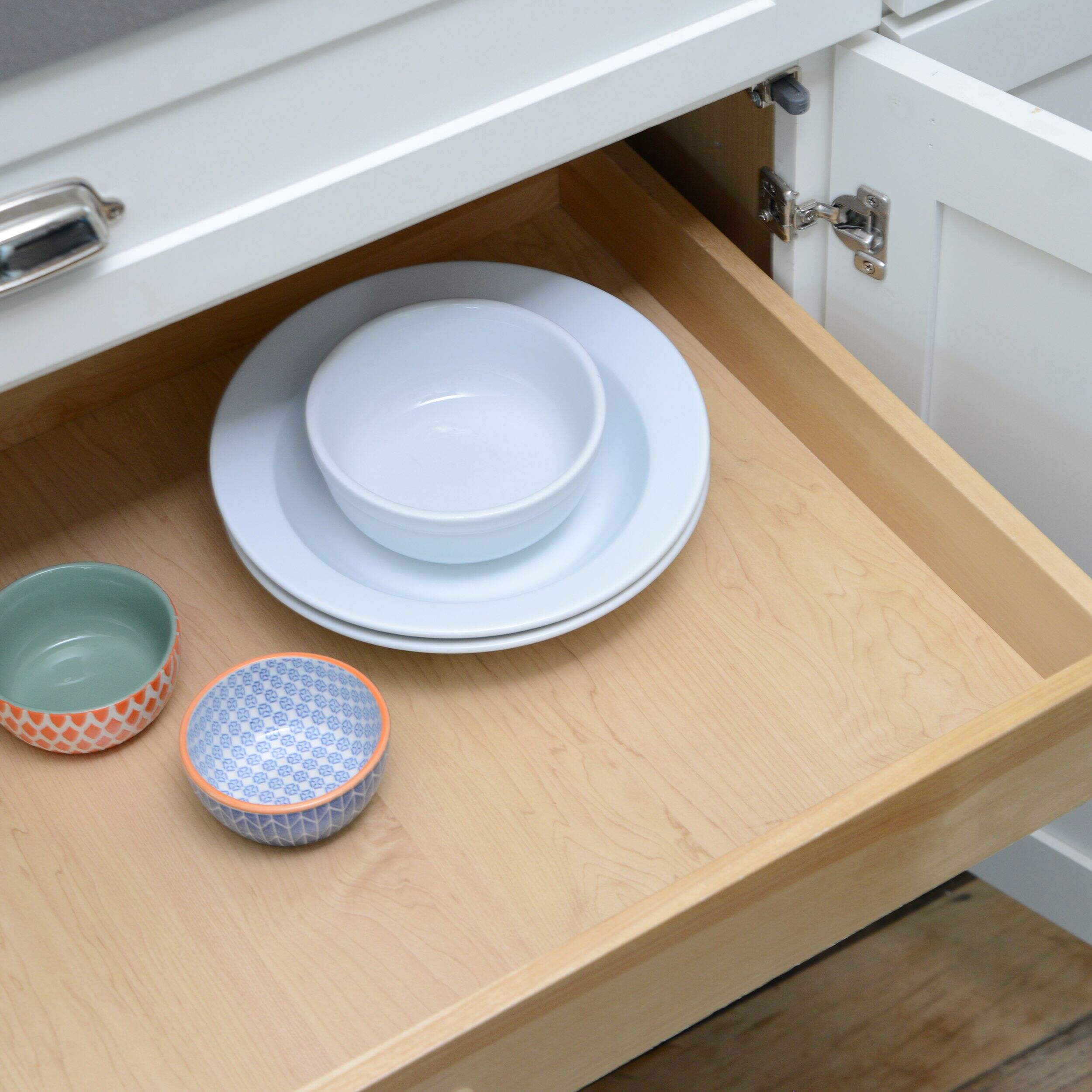 Les doublures de tiroirs en vinyle transparent autocollant sont parfaites pour les cuisiniers désordonnés qui veulent garder leurs placards de cuisine sans encombrement. Il suffit de couper à la taille appropriée avec des ciseaux, de retirer la pellicule de papier et de coller sur le tiroir. La doublure transparente permet au grain de bois ou au fini peint de rester bien en place, de sorte qu'il ne cache pas l'esthétique de votre solution de rangement. Résistante aux taches et lavable, la doublure crée une barrière protectrice contre les déversements et les salissures tout en vous permettant de voir facilement ce qu'il y a à l'intérieur. Idéale pour les cuisines, les salles de bains et tout autre endroit où vous avez besoin d'une méthode d'organisation facile à nettoyer.