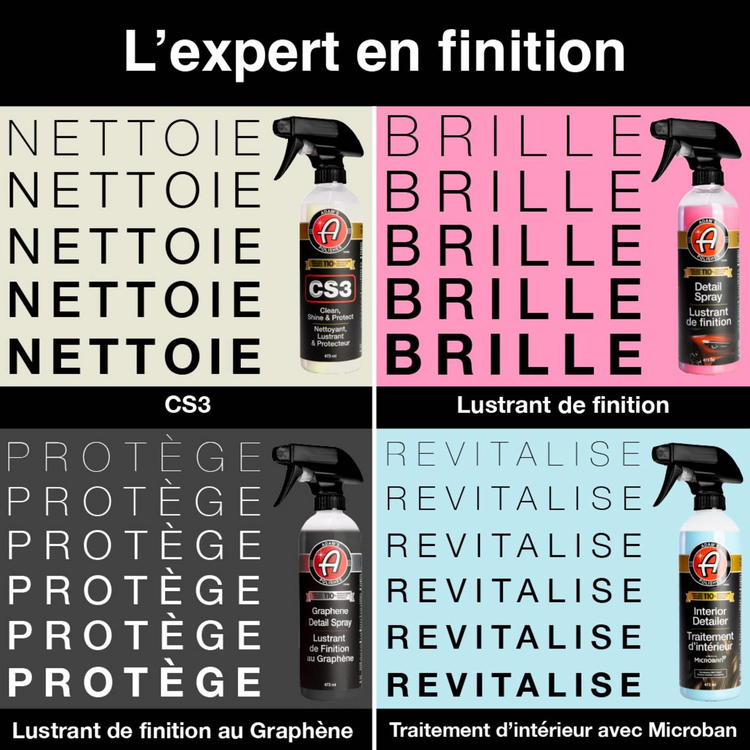 Lubrifiant tout en éliminant la saleté, la poussière, la graisse, les débris et autres contaminants sans compromettre votre couche de finition, notre CS3 donne à votre voiture une brillance réfléchissante et une protection contre les UV tout en produisant une finition durable et impressionnante.