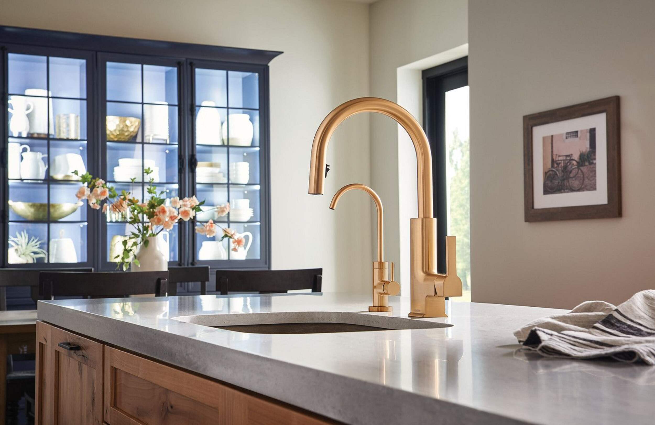 Robinet d'eau potable moderne 1 manette Moen Sip au fini or brossé ajoutant une touche de raffinement à n'importe quelle pièce