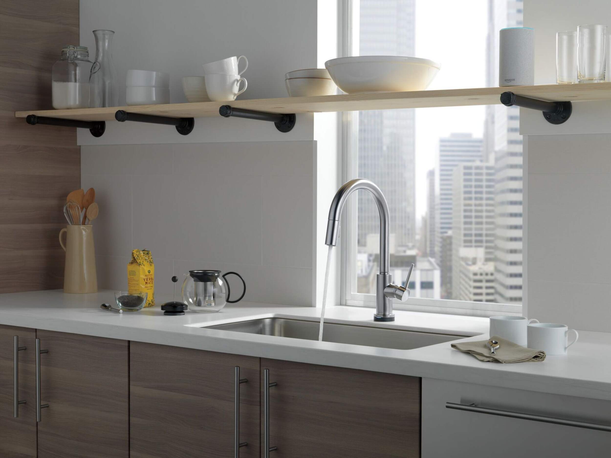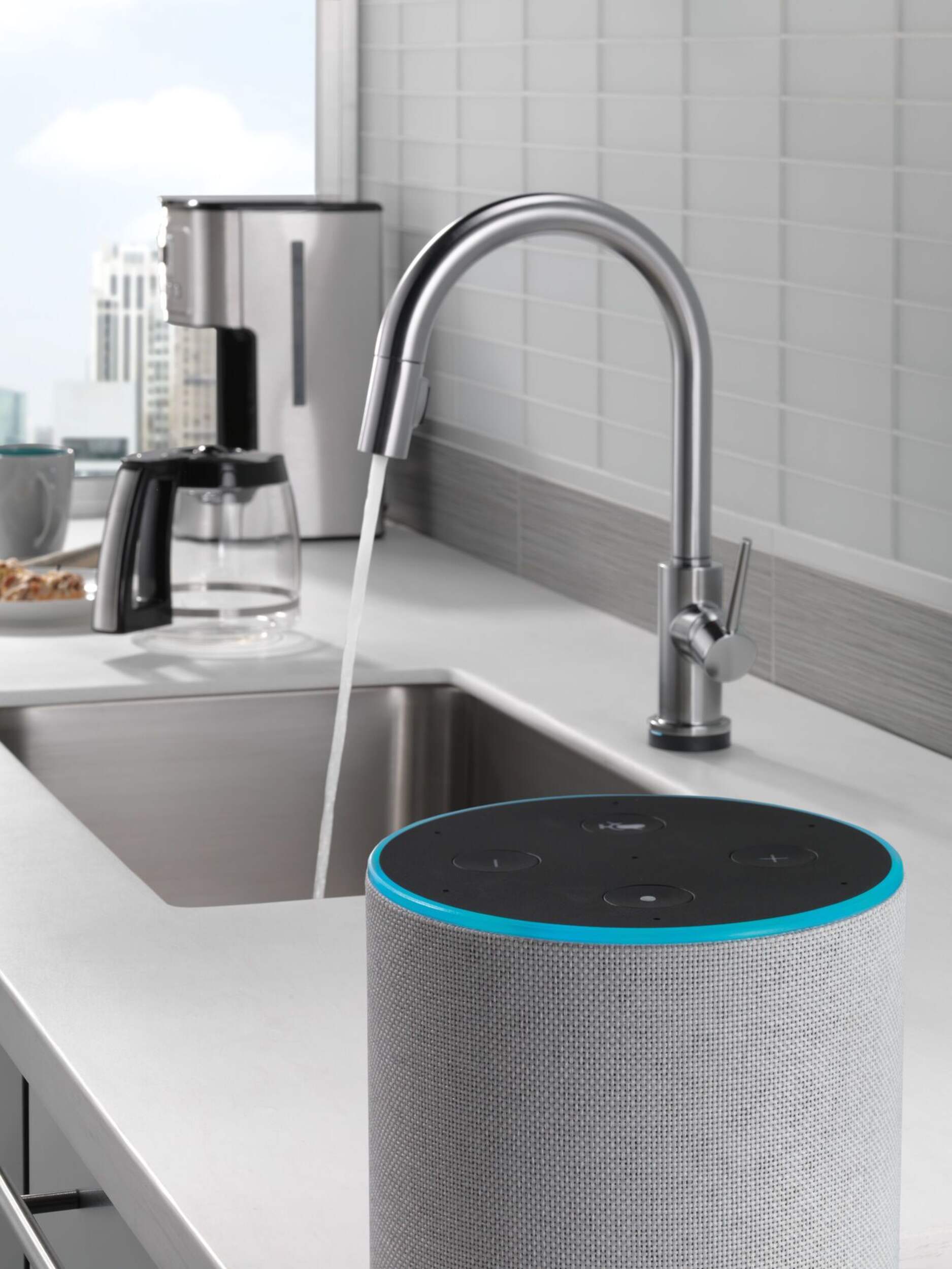 Robinet d'évier à 1 poignée Delta Trinsic Voice, bec rétractable, doté de la technologie VoiceIQ qui relie les plateformes éprouvées (les appareils compatibles avec AmazonMD AlexaMD ou l'Assistant GoogleMD et les robinets dotés de la technologie Delta Touch2O) en une solution de nouvelle génération