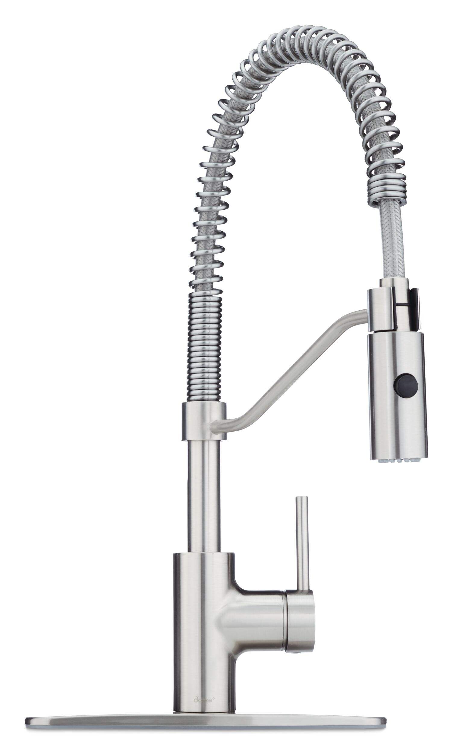 Le robinet à une poignée Danze Jasper en acier inoxydable offre un style haut de gamme et une fonctionnalité pratique à votre cuisine. Conçu pour la polyvalence, il convient aux éviers à 1 ou 3 trous avec centre de 8 po et offre des fonctions d'aération et de jet, ce qui est idéal pour remplir les casseroles ou rincer la vaisselle. La cartouche en céramique antigouttes économise l'eau, tandis que le fini en acier inoxydable résiste aux taches d'eau et aux traces de doigts, pour une apparence élégante. Un choix élégant et pratique pour toute cuisine.