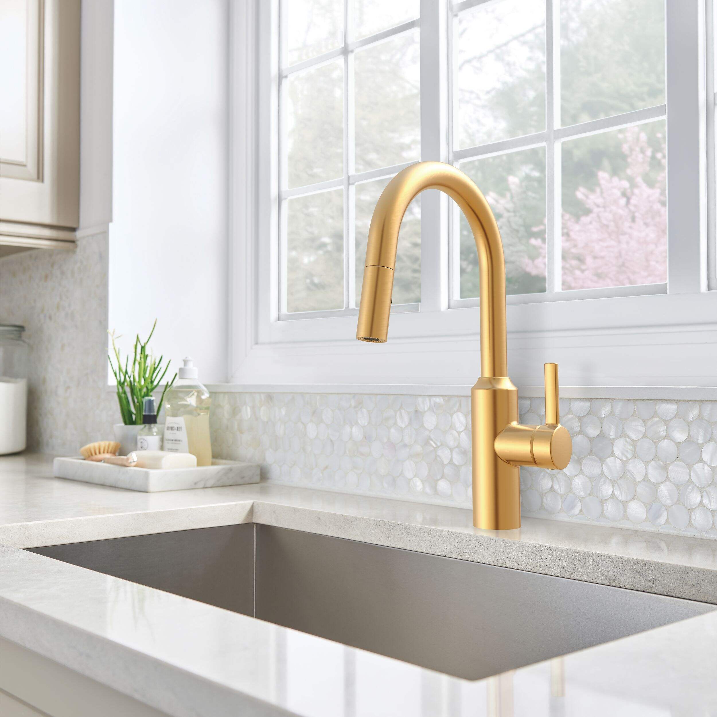 Le robinet d'évier à bec rétractable et à poignée simple Danze Colby est conçu pour faciliter les tâches quotidiennes. La douchette rétractable offre des fonctions d'aération et de vaporisation, ce qui vous permet de tout nettoyer facilement, du rinçage des fruits et légumes délicats au nettoyage des aliments tenaces collés. Le fini bronze brossé ajoute une touche chaleureuse et sophistiquée, ce qui en fait un point central magnifique qui rehausse l'apparence générale de votre cuisine. Ce robinet polyvalent combine une esthétique moderne et une conception fonctionnelle, vous permettant d'avoir l'outil parfait à portée de main pour chaque tâche à accomplir dans la cuisine.
