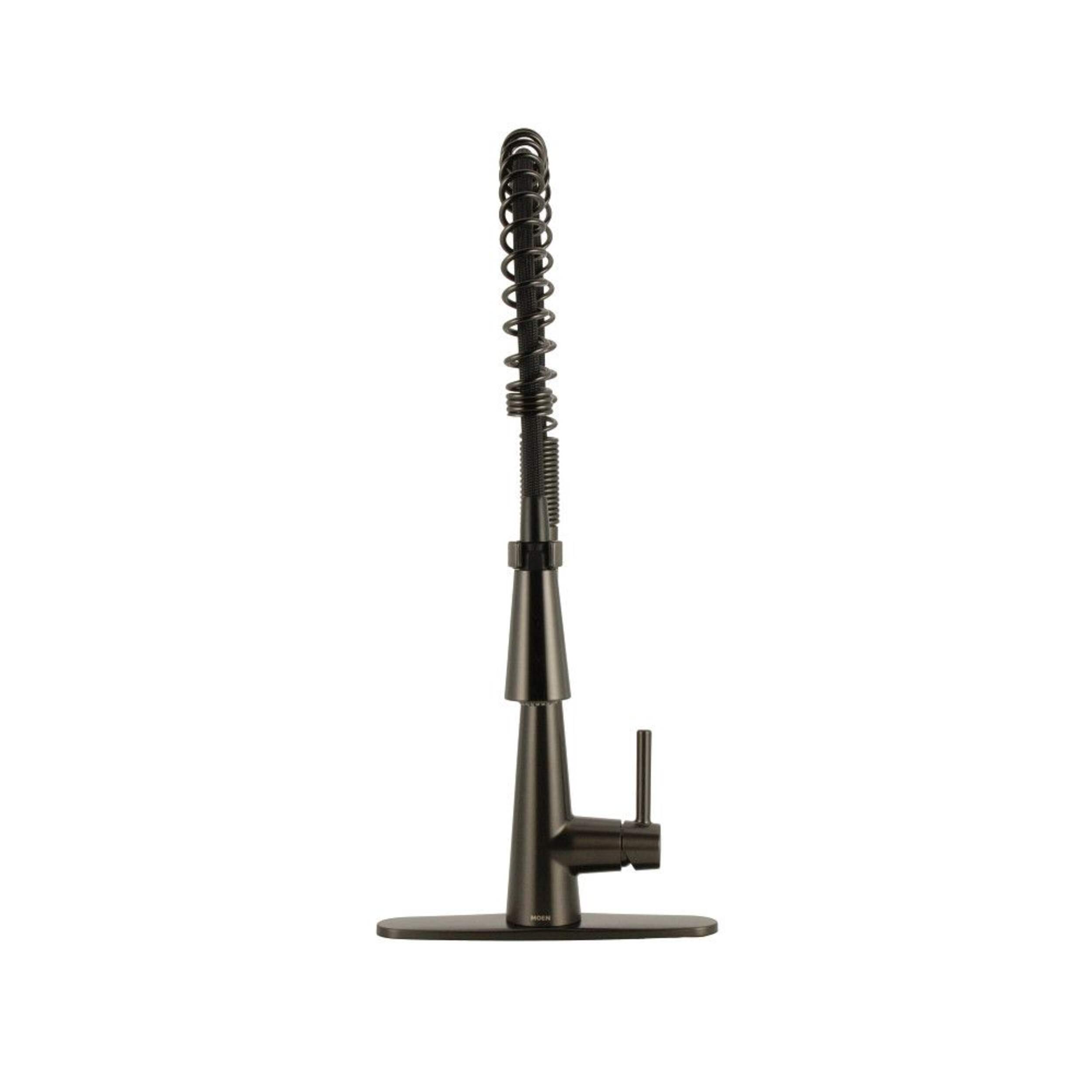 Robinet d'évier 1 manette prérinçage bec rétractable Moen Sleek doté d'un fini en acier inoxydable noir qui crée un impact subtil et frappant dans la cuisine