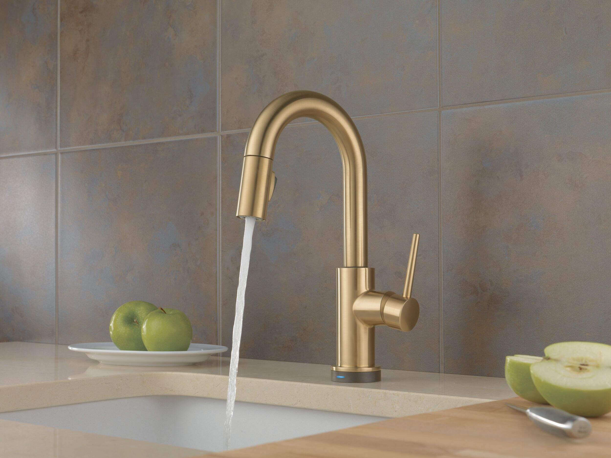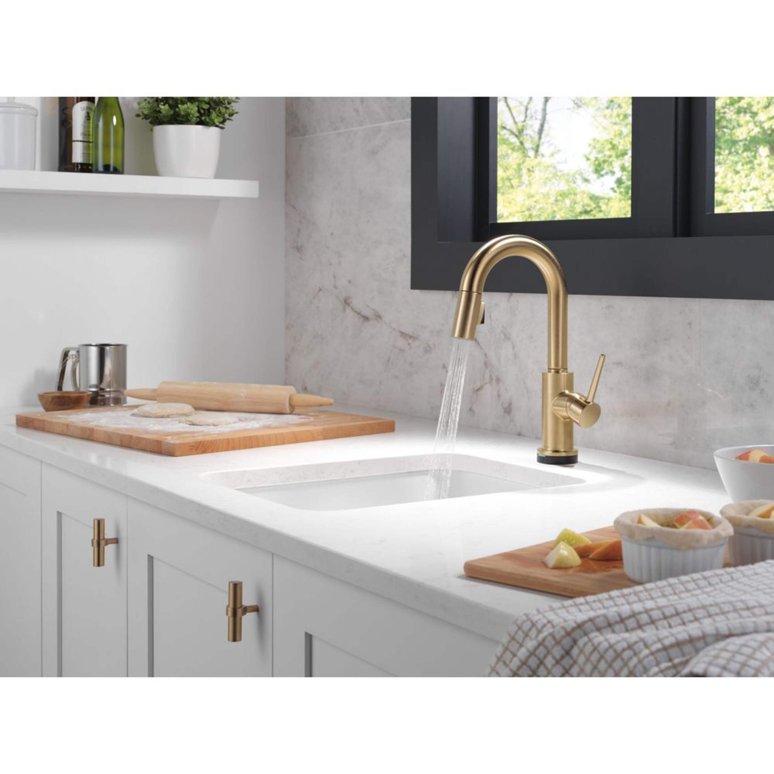 Robinet de bar/préparation à 1 poignée Delta Trinsic, bec rétractable, signaux DEL, doté de la technologie Touch2O; une simple pression n'importe où sur le bec ou la poignée permet de démarrer et d'arrêter le débit d'eau
