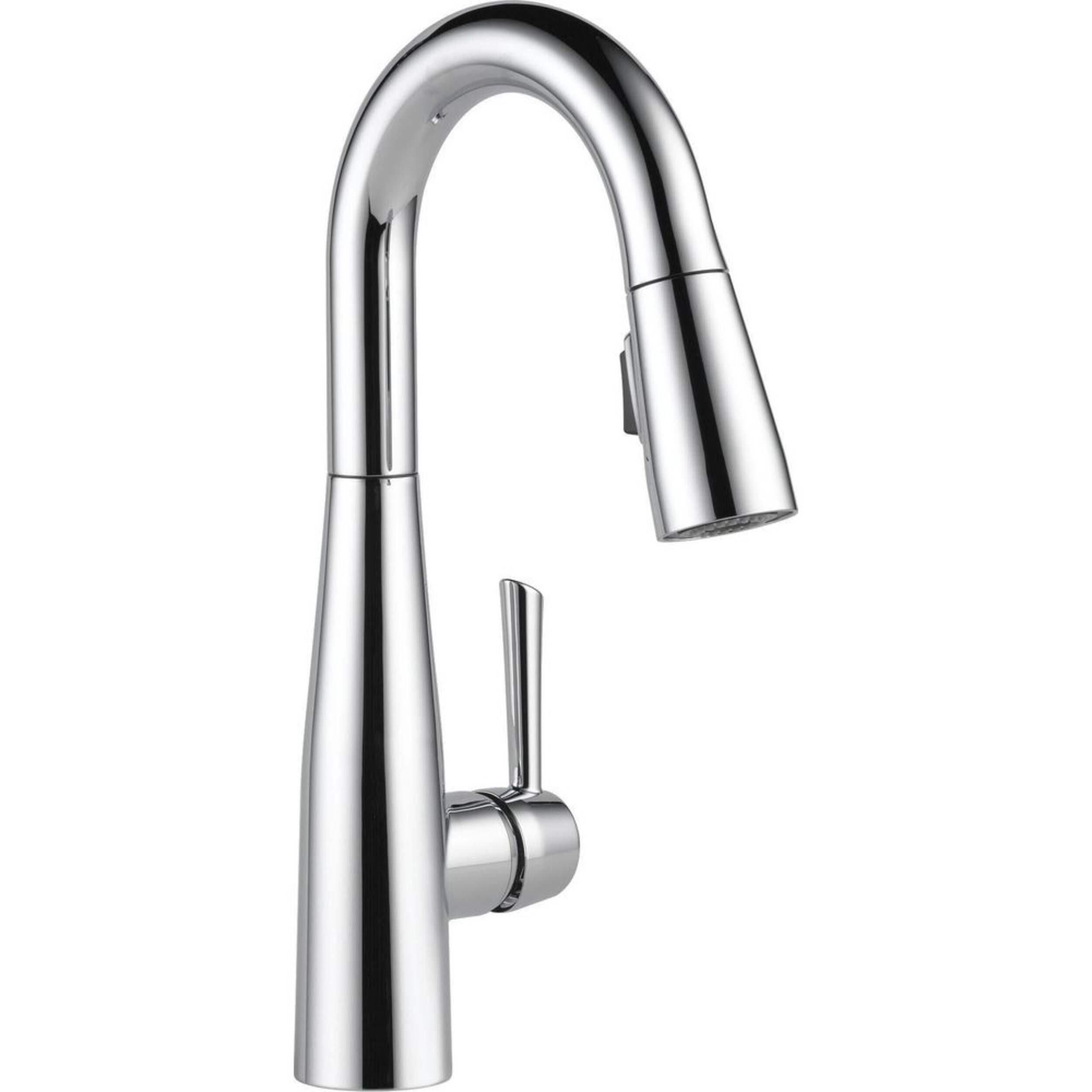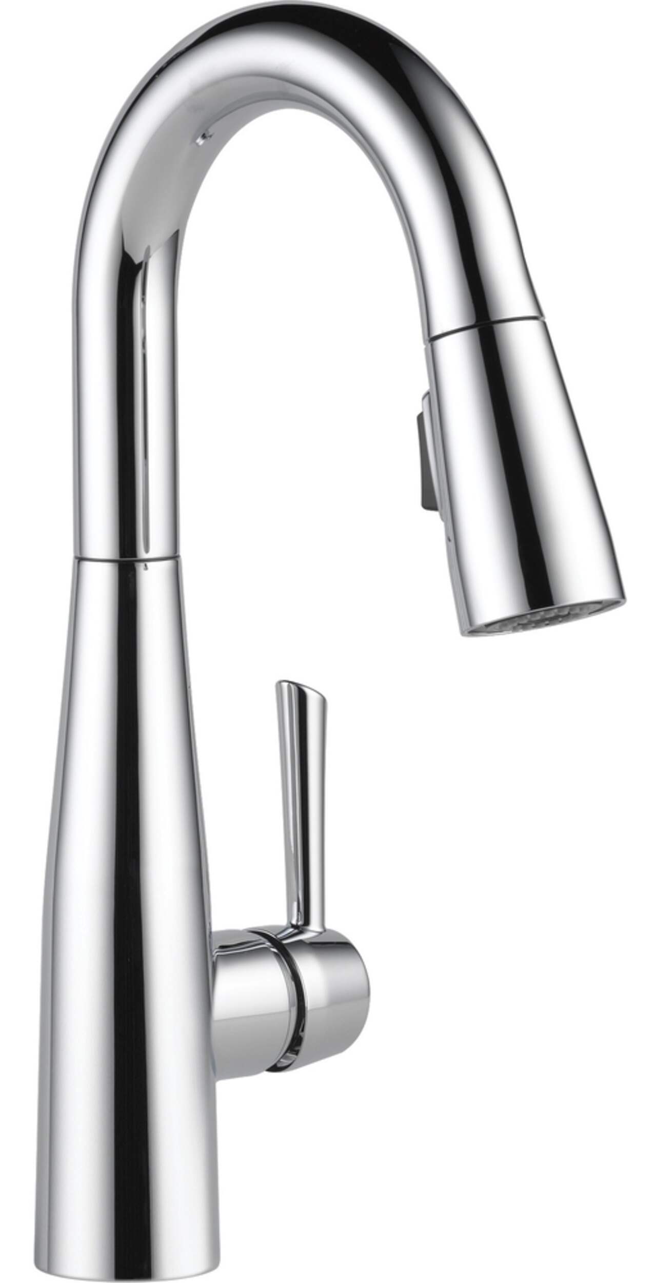 Robinet de bar rétractable à 1 poignée Delta avec support MagnaTite utilisant un puissant aimant pour tenir le robinet bien en place pour qu’il reste accroché quand il ne sert pas