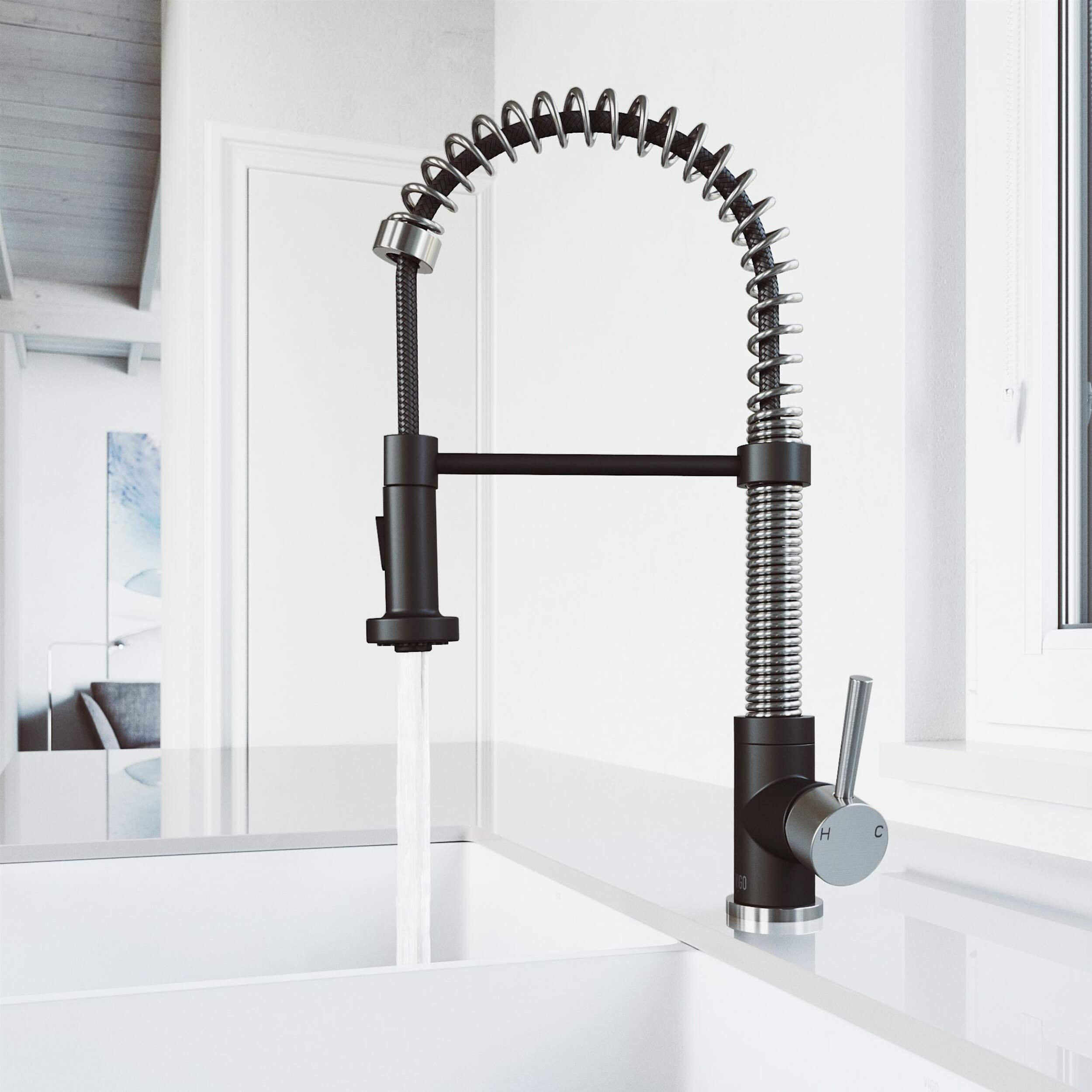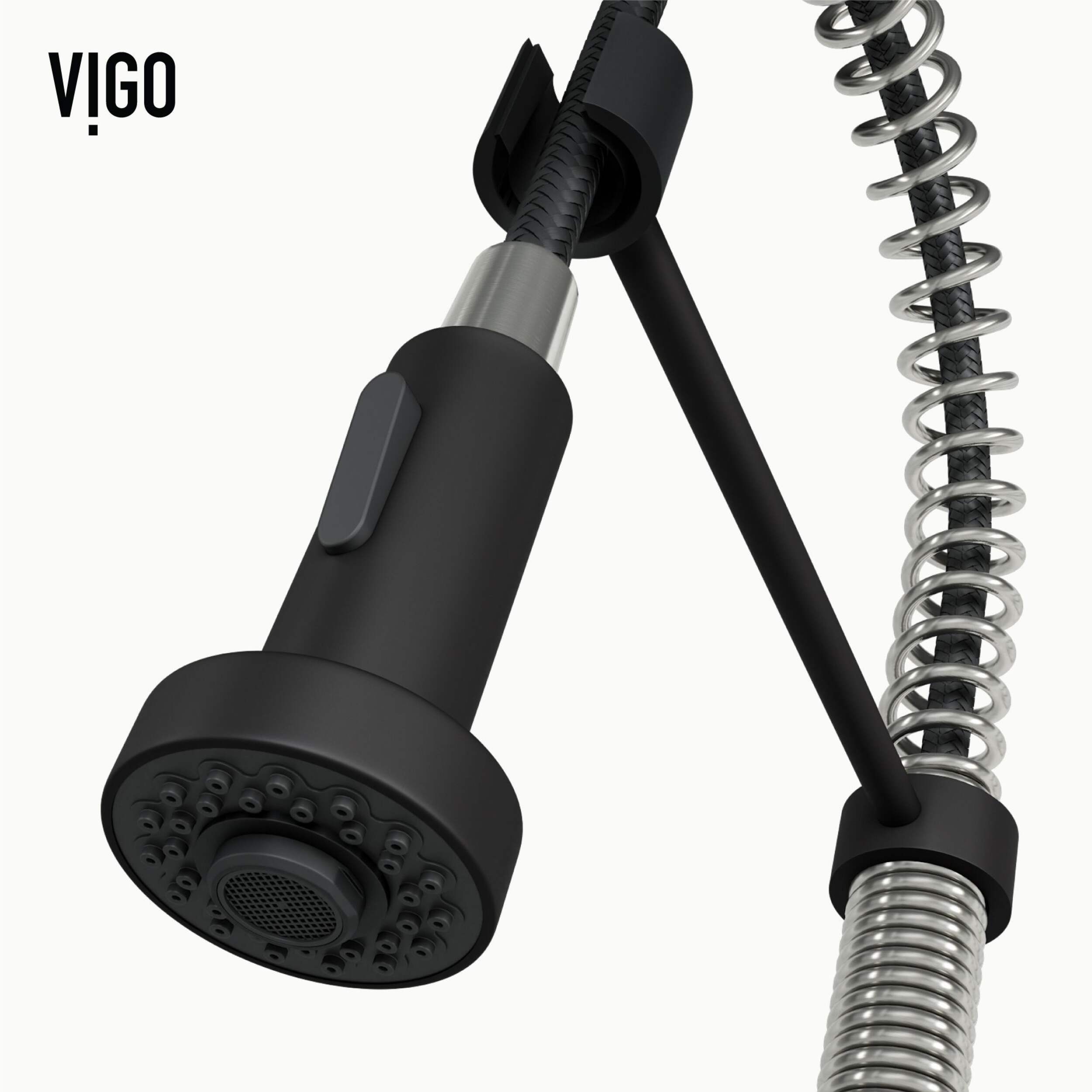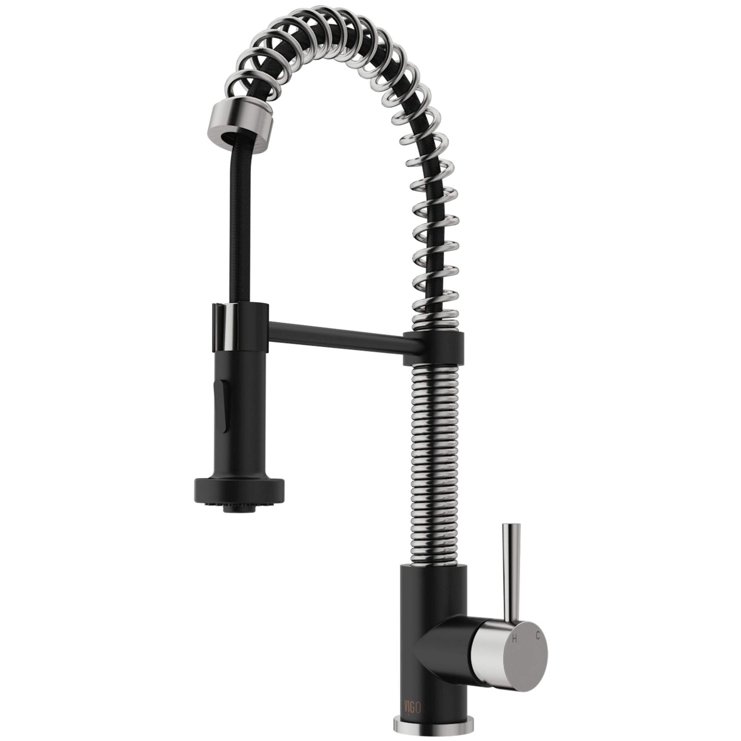 La tête de pulvérisation à tirette avec 2 modes du robinet d'évier à douchette extensible VIGO Edison vous permet de choisir entre un débit aéré ou un jet puissant pour tous vos besoins de cuisine modernes. Le bec pivotant de 360° s'étend jusqu'à 30 po, et ses détails en spirale et sa construction en laiton massif en font un accessoire très fonctionnel et magnifique.