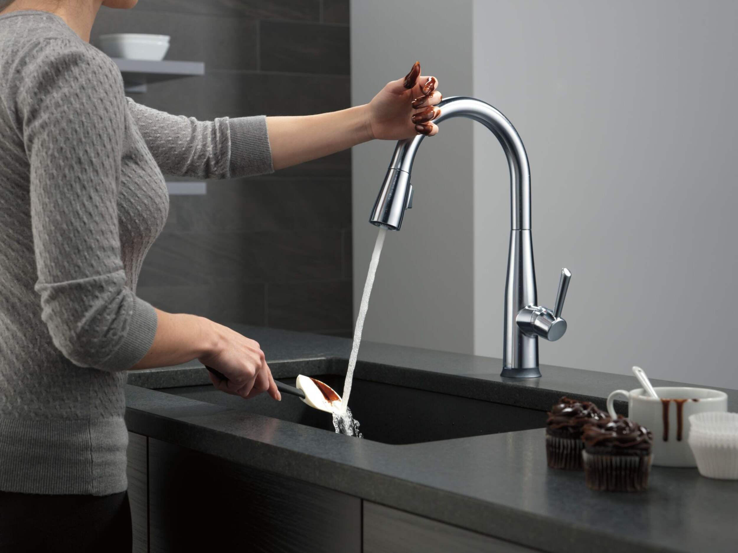Touchez-le pour l'activer. Touchez-le pour arrêter. Peu importe si vous avez les mains libres, la technologie DeltaMD Touch2OMD vous aide à garder votre robinet propre, même si vos mains ne le sont pas. Une simple pression du poignet ou de l'avant-bras, n'importe où sur le bec ou la poignée, active l'écoulement de l'eau à la température réglée sur la poignée. La lampe à DEL Delta TempSenseMC change de couleur selon la température de l'eau et éliminer les surprises. Le socle DeltaMD MagnaTiteMD utilise un puissant aimant intégré pour tirer avec précision et la maintenir en place. Les robinets DeltaMD dotés de la technologie DIAMONDMC Seal offrent un rendement comme neuf pour la vie grâce à une forme brevetée qui réduit les points de fuite, est moins compliqué à installer et a une durée de vie 2 fois plus longue que la norme de l'industrie*. Le robinet de cuisine à arche haute Delta Faucet Trinsic permet de nettoyer facilement les accumulations de calcium et de calcaire. Vous pouvez les installer en toute confiance, sachant que les robinets de cuisine Delta sont couverts par notre garantie limitée à vie. Les pièces électroniques sont couvertes par notre garantie de 5 ans. *La norme de l'industrie est basée sur la norme ASME A112.18.1 sur 500 000 cycles.