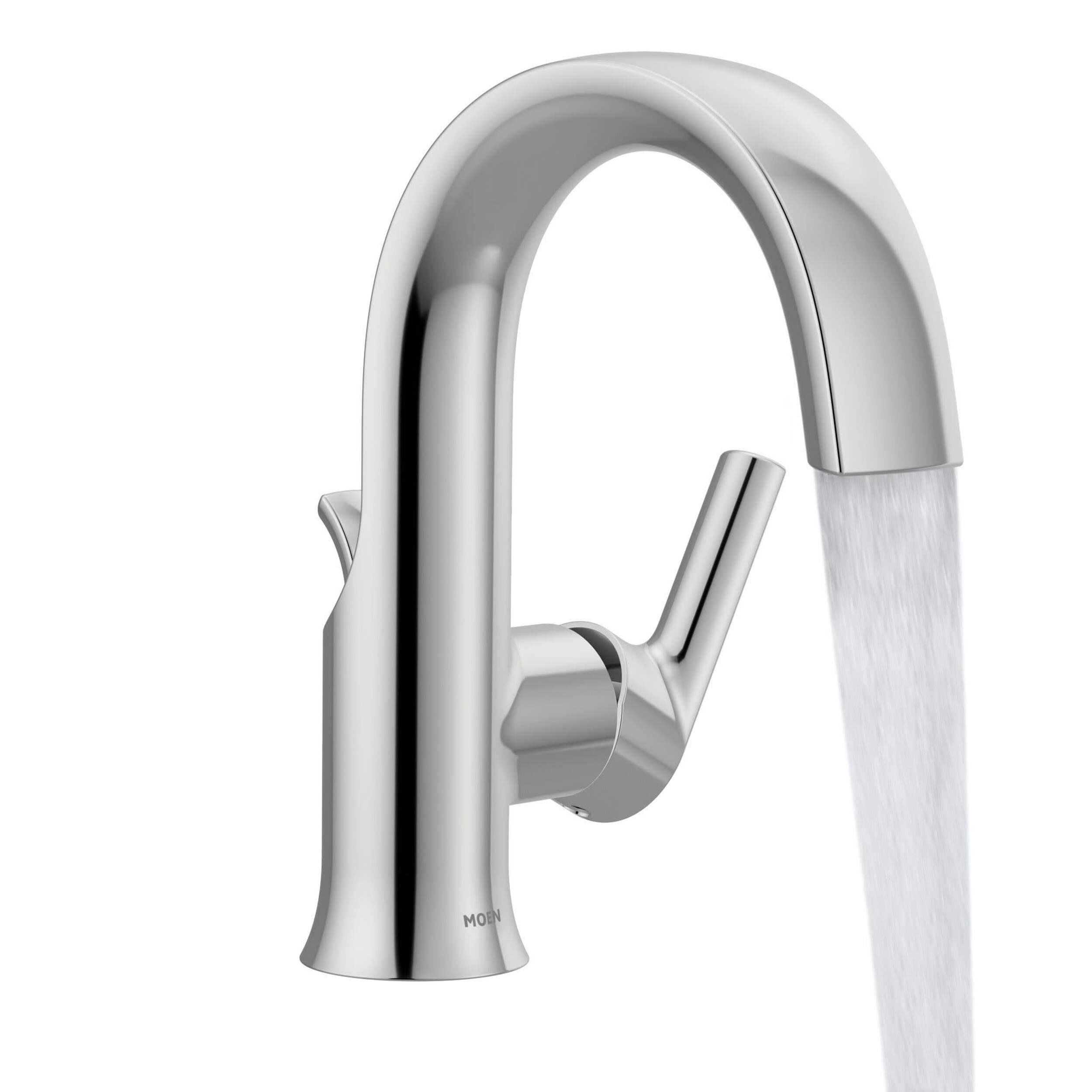 Robinet de lavabo 1 trou Moen Doux à 1 manette au fini chromé réfléchissant comme un miroir convenant à tout style de décoration