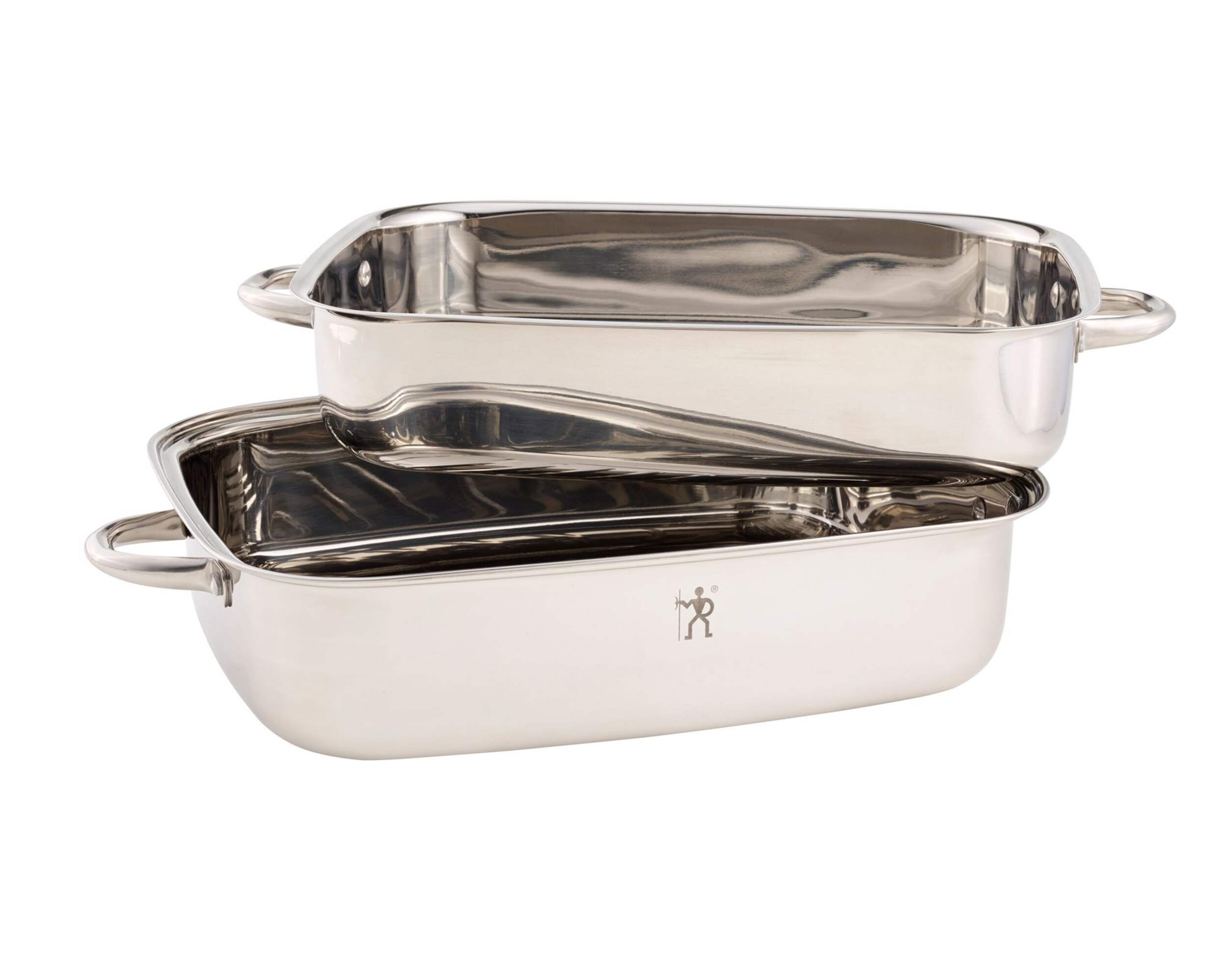 Préparez des poulets, dindes et rôtis qui mettent l'eau à la bouche et une variété de vos plats préférés avec cette rôtissoire en acier inoxydable Henckels. Conçue pour offrir d'excellents résultats, elle a des arêtes au fond pour soulever les aliments et les cuire uniformément. La rôtissoire peut être inversée et utilisée comme plat de service.