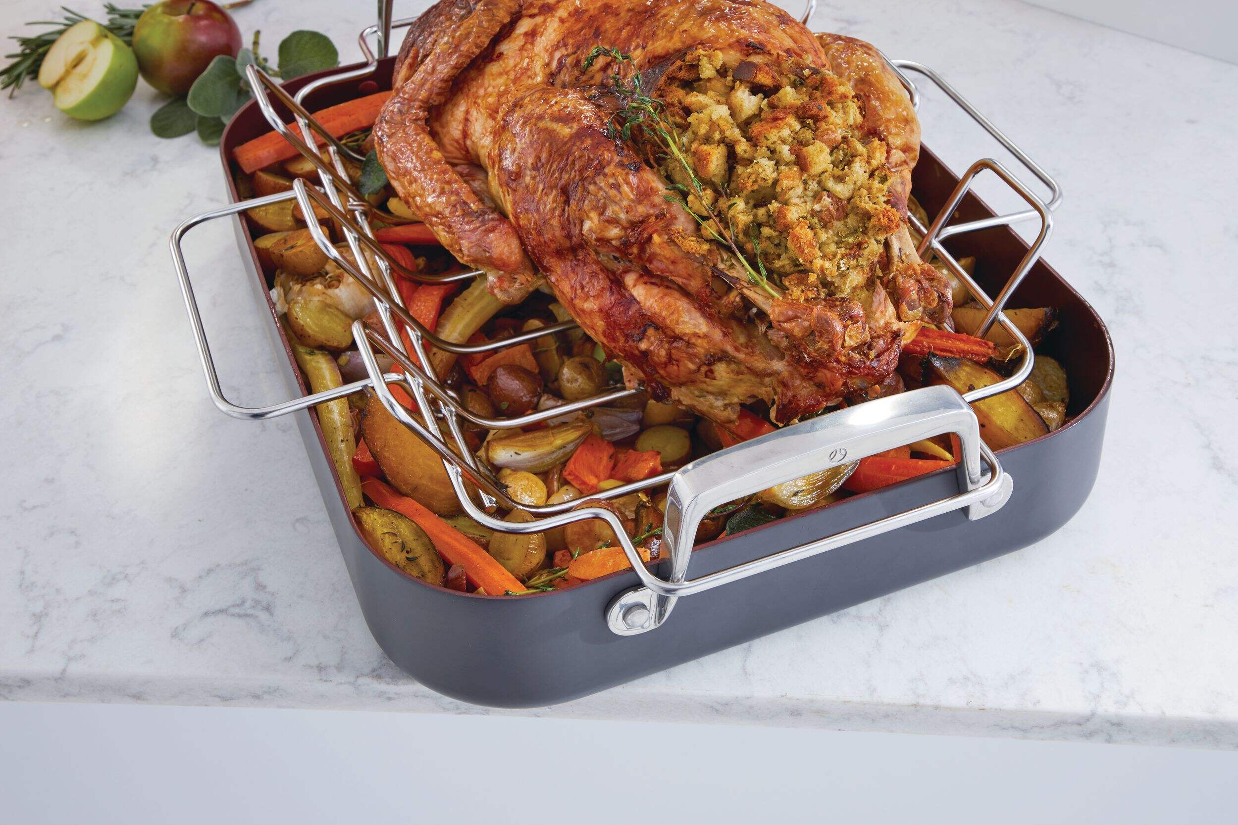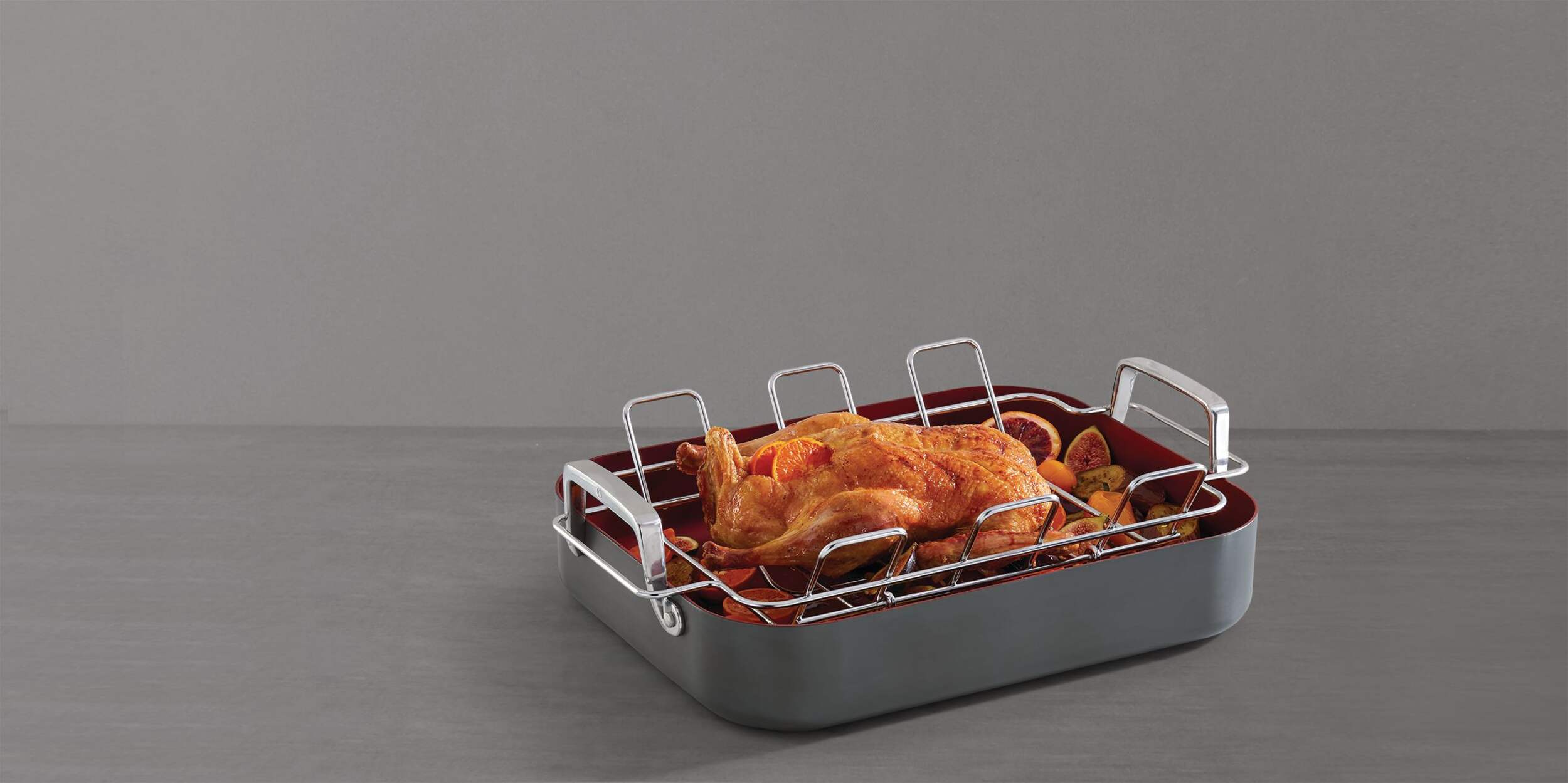 Cuisinez uniformément et sans effort avec la rôtissoire anodisée dure PADERNO. Rôtissoire avec grille conçue pour durer longtemps. Revêtement antiadhésif de qualité supérieure qui vous aide à améliorer votre expérience de cuisson, et comme un minimum d'aliments ou d'huile sera collé à cette poêle au four, le nettoyage est plus facile par la suite. Vous pouvez même la laver au lave-vaisselle si vous préférez. Poignées de la grille en V qui se replient pour faciliter le rangement et faciliter le soulèvement et la manipulation de la rôtissoire avec des gants de cuisine.
