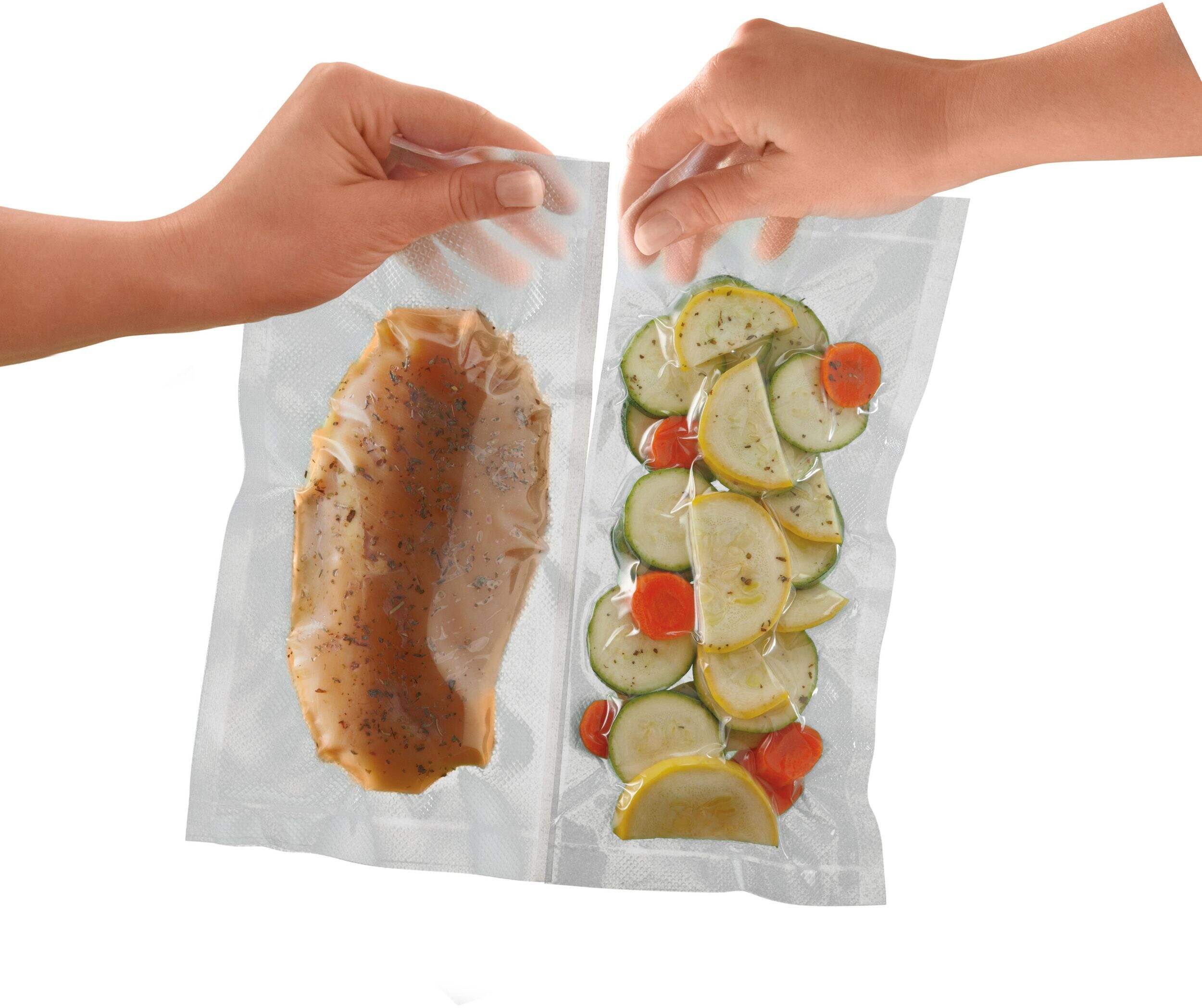 Sac à portion individuelle scellé sous vide FoodSaver de 11 po qui conserve la fraîcheur et préserve la saveur des aliments. Le rouleau est perforé au milieu pour sceller deux choses à la fois! Idéal pour conserver les restes et les portions individuelles, ou pour sceller vos aliments en vrac deux fois plus rapidement. Sans BPA.