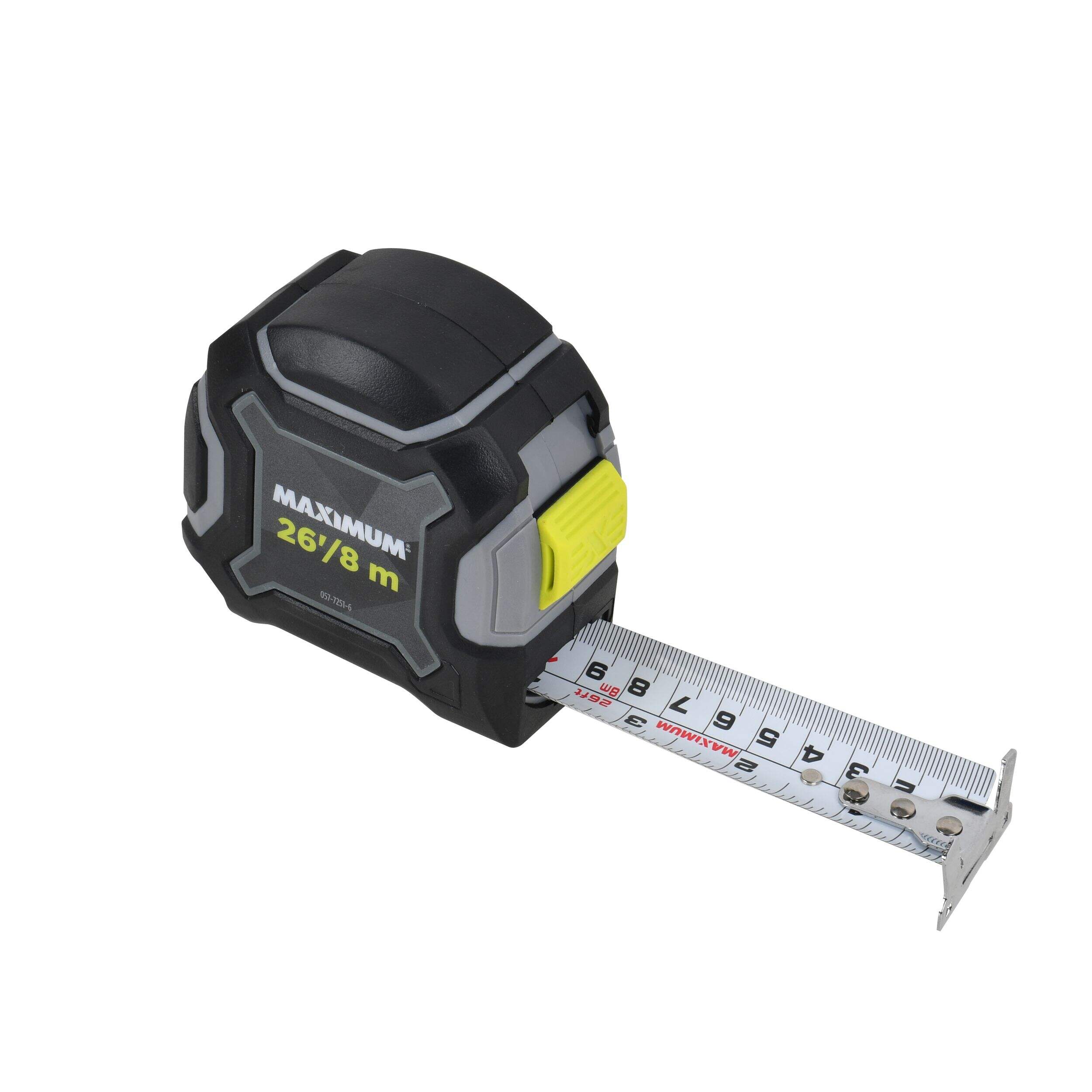 Le ruban à mesurer MAXIMUM de 8 m/26 pi est doté d'un revêtement en nylon extrudé pour résister aux chocs