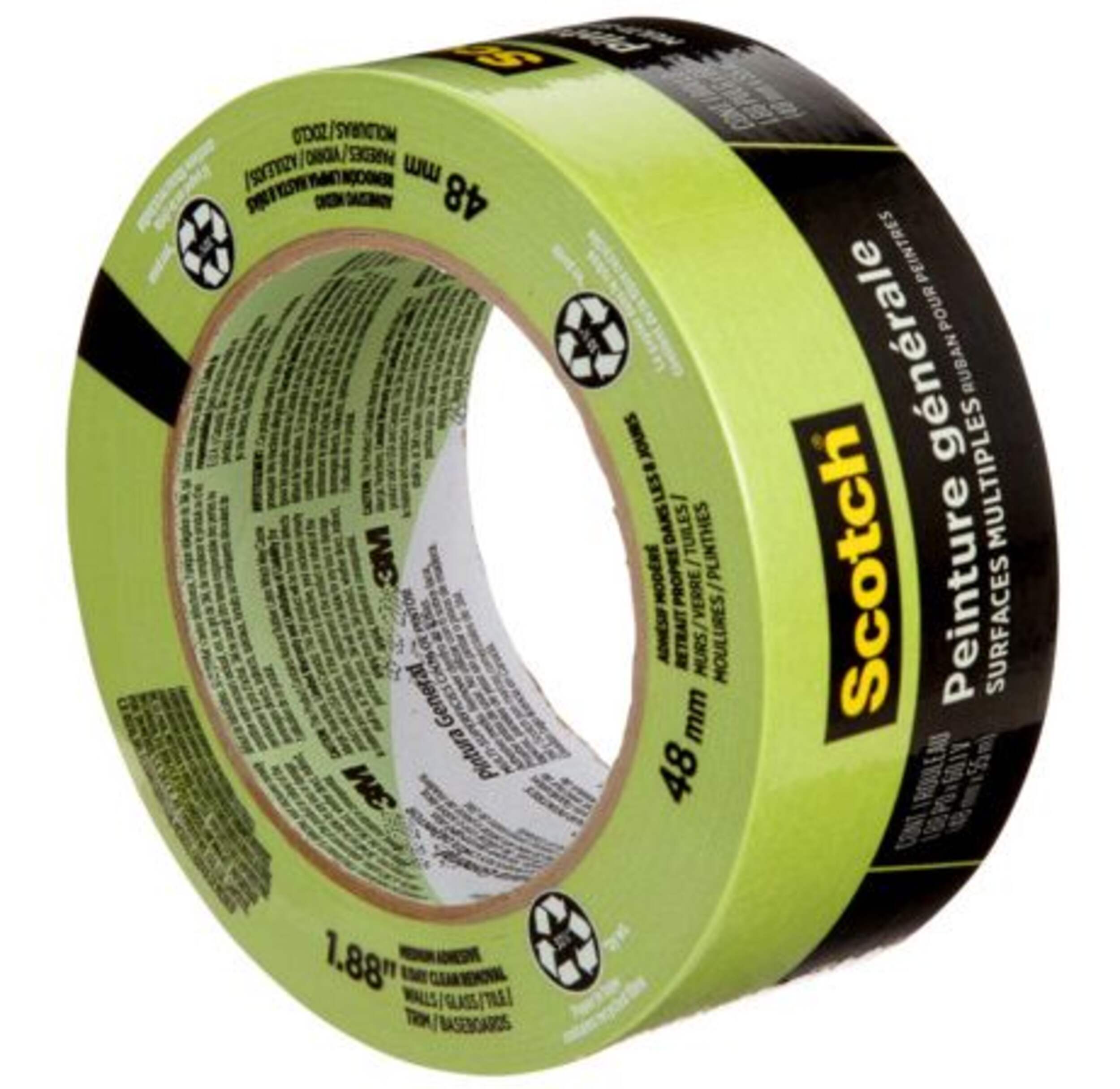 Ruban de peintre général multisurfaces ScotchMD conçu pour diverses tâches de peinture. Ce ruban polyvalent peut tenir sur des surfaces intérieures pendant un maximum de 8 jours, puis se retire facilement sans laisser de résidu collant, afin de protéger vos bordures en bois, vos murs peints, le plancher de tuile ou les fenêtres. Pour obtenir d'excellents résultats, assurez-vous que la surface est propre, sèche et exempte de poussière afin que le ruban colle correctement. Ensuite, appliquez le ruban de peinture générale pour surfaces multiples ScotchMD sur la surface tout en appuyant fermement dessus pendant que vous avancez. Laissez le ruban adhésif agir pendant environ 30 à 60 minutes avant de peindre pour une adhérence optimale. Une fois que vous avez fini de peindre, assurez-vous que la peinture est complètement sèche avant de retirer le ruban. Pour le soulever correctement, commencez par tirer lentement le ruban sur lui-même avant de le retirer à un angle de 45 degrés.