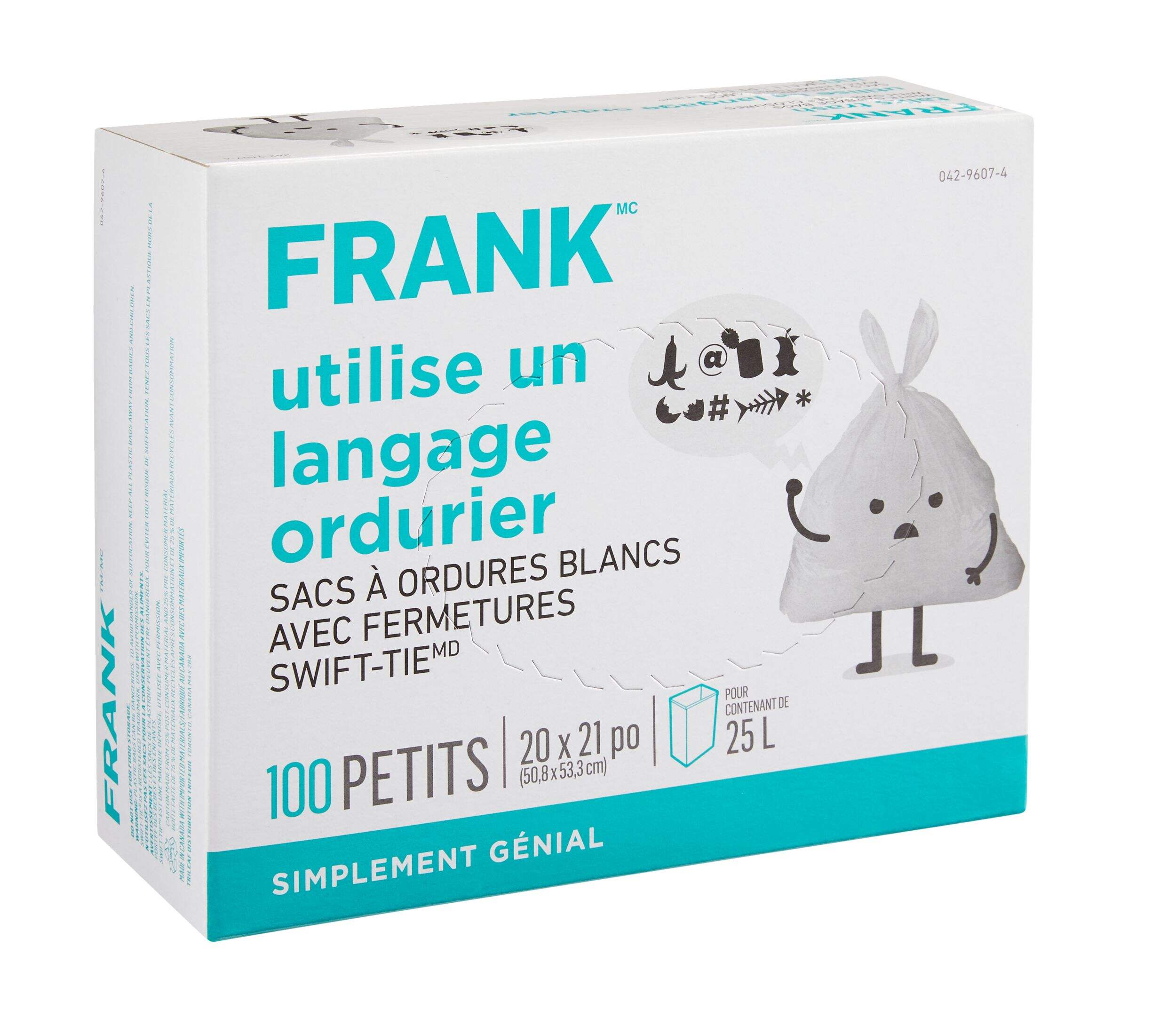 Petits sacs à ordures FRANK non parfumés avec attaches Swift Tie qui sont dotés de sacs à ordures en polyéthylène de qualité 100 parfaits pour une utilisation quotidienne. Robustes et faciles à attacher, ces petits sacs à déchets peuvent contenir jusqu'à 25 L de déchets et sont parfaits pour ramasser et transporter les ordures ménagères. Garantie de 1 an comprise.