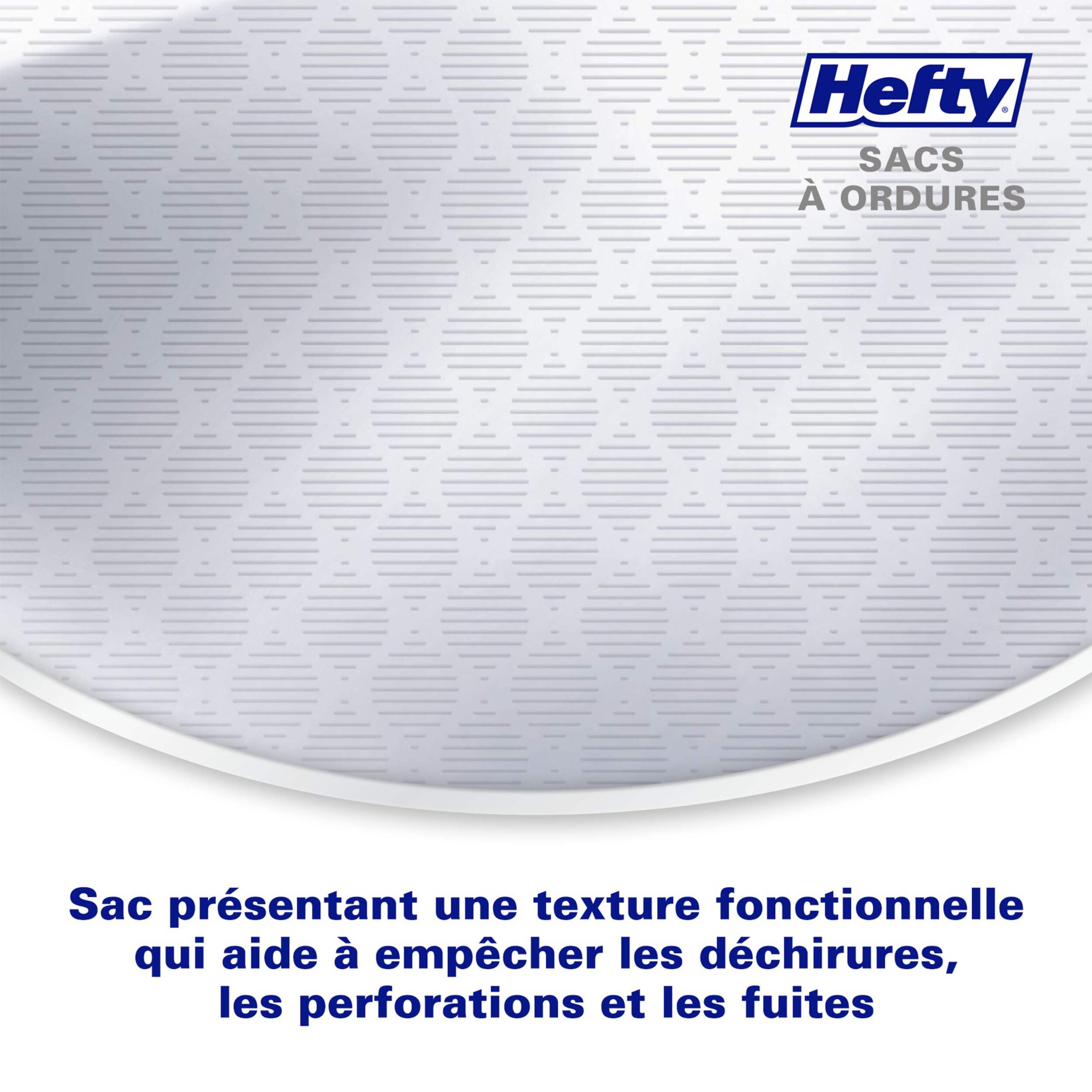 Les grands sacs de cuisine STRONG d'Hefty MD avec rabats faciles à fermer et le neutralisant d'odeurs breveté HAMMER & HAMMER MT assurent que vos ordures de cuisine restent scellées et fraîches. Parfaits pour manipuler les restes de viande, les pelures de légumes et les restes de repas, ces grands sacs de 34 litres vous aident à garder votre bac hygiénique et sans odeur entre chaque vidage. Garanti de résister aux tâches difficiles de la cuisine sans déchirer, ce paquet économique de 40 grands sacs blancs gardera votre bac propre et bien rangé pour les semaines à venir.