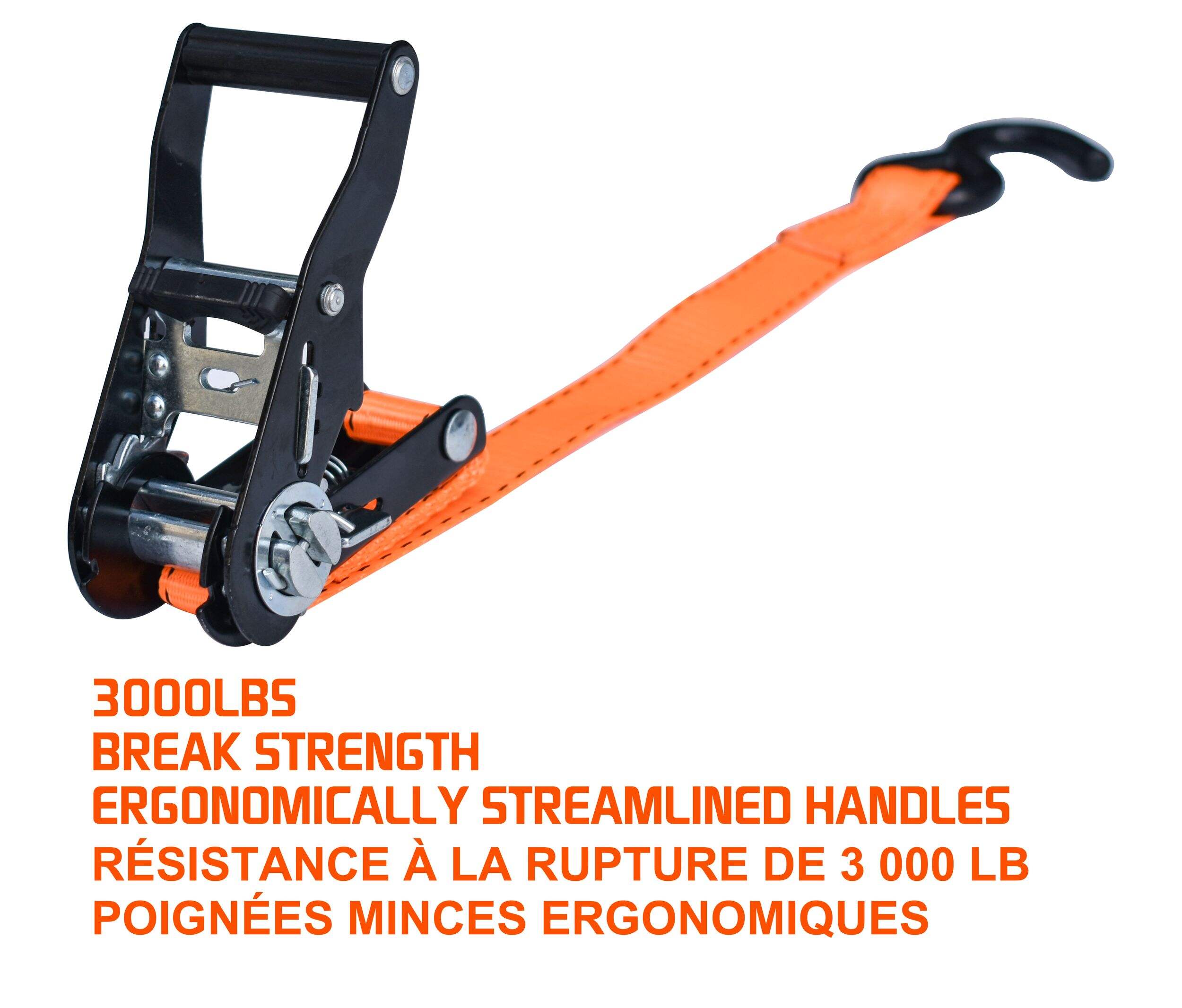 Sangles à cliquet non rembourrées de service intense avec résistance à la rupture de 1 361 kg (3 000 lb)