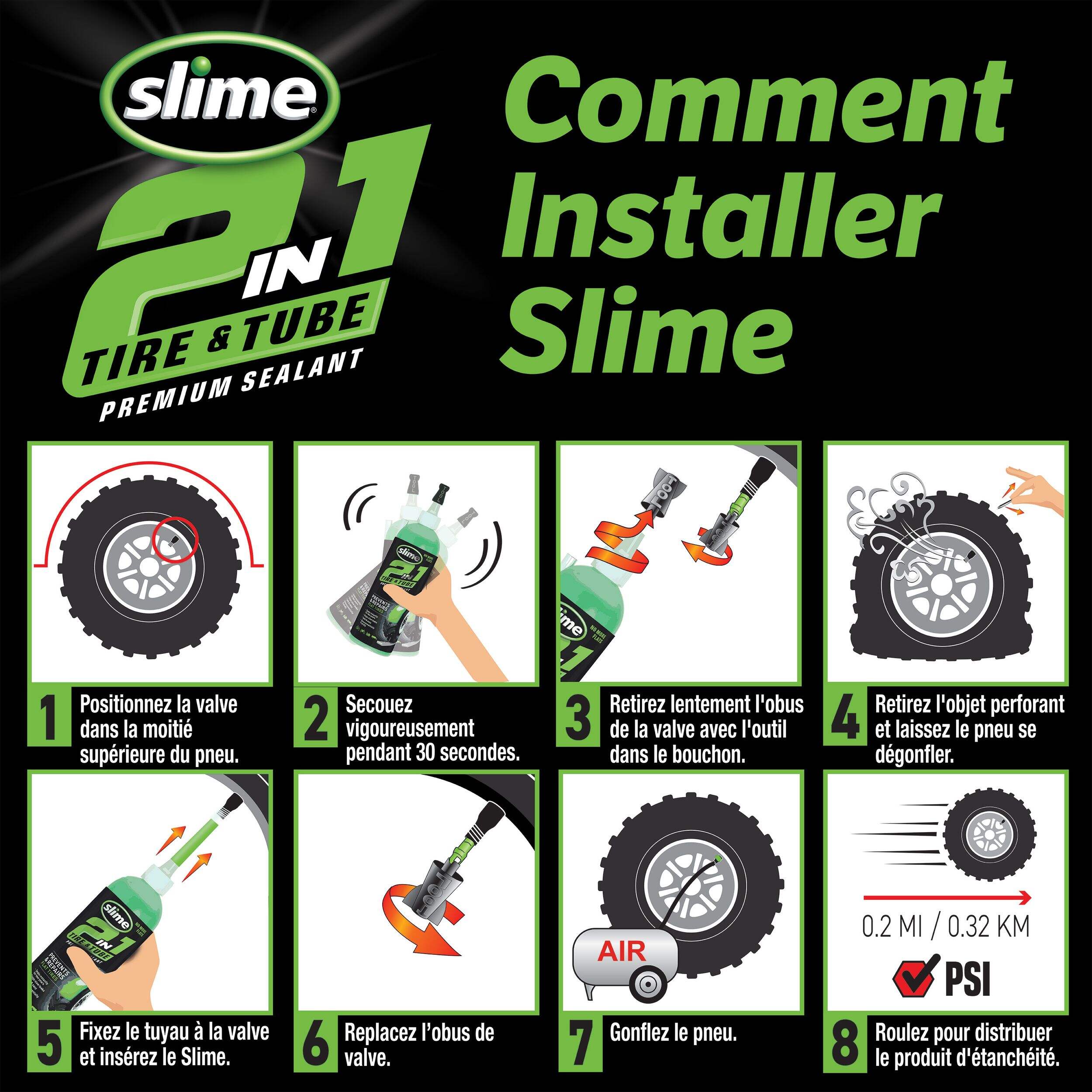 Le pneu est-il muni d'une chambre à air ou pas? Qui s'en soucie? Le nouveau scellant pour pneus et chambres à air 2-en-1 de qualité supérieure Slime aide à prévenir et à réparer les crevaisons dans tous les pneus et chambres à air hors route. Ça fonctionne!