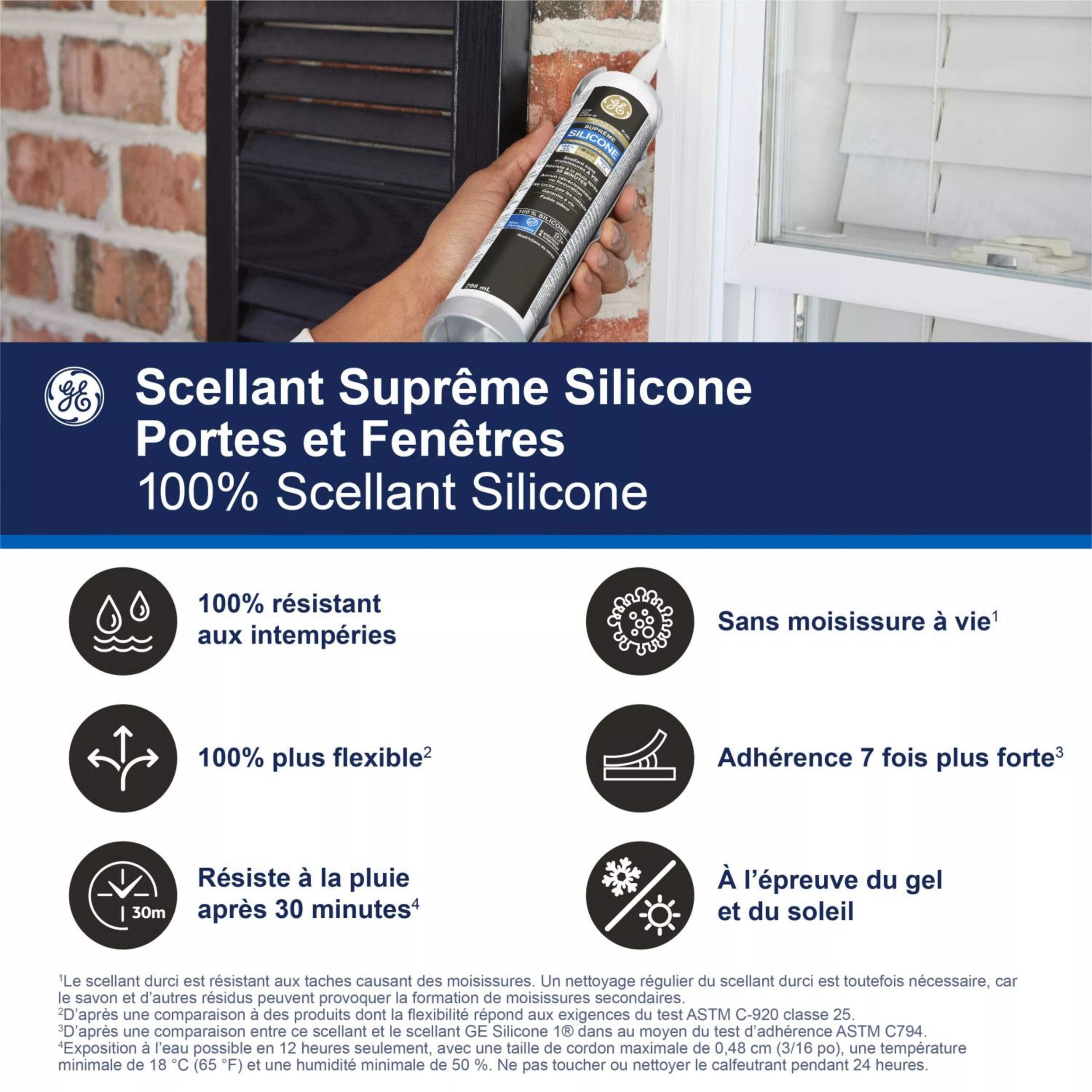 Scellant à la silicone GE Supreme pour portes et fenêtres résistant aux moisissures et offrant une protection à vie contre les moisissures; étanche à 100 %
