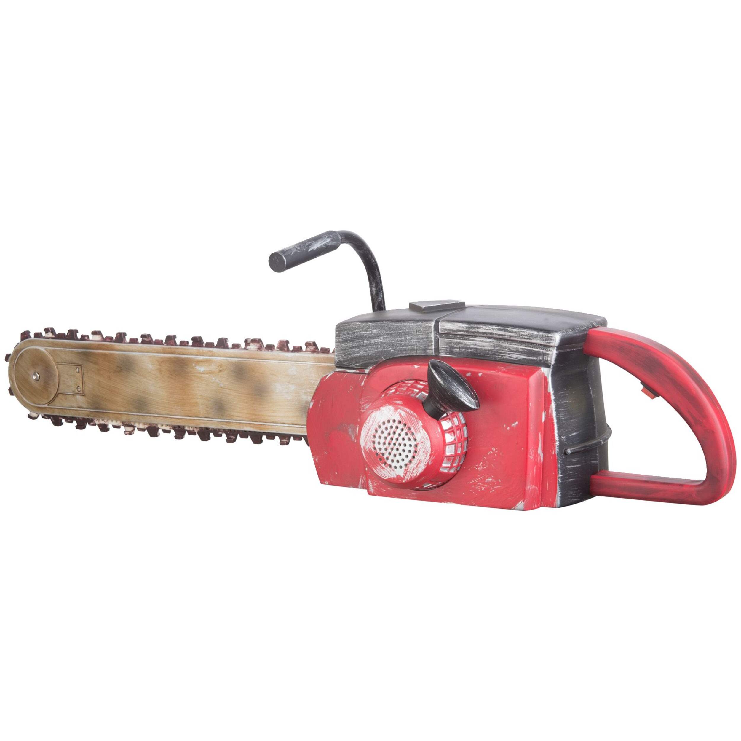Scie à chaîne rouillée animée Gemmy avec dents qui bougent le long de la lame et bruit de moteur
