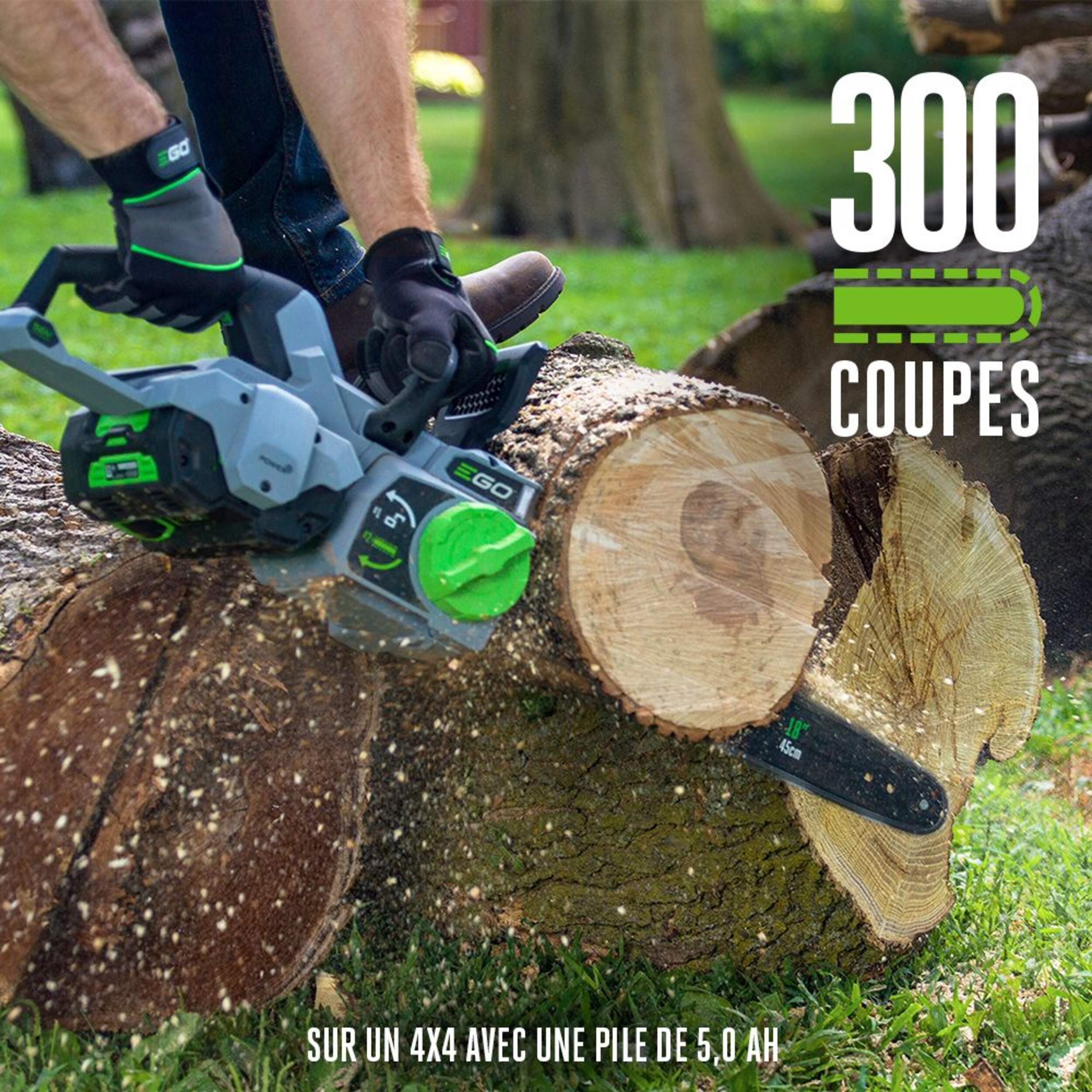 Scie à chaîne sans fil EGO 56 V au lithium-ion offrant la puissance et le rendement d'une scie à chaîne à essence de 45 cm3 sans bruit, sans tracas ni émanations