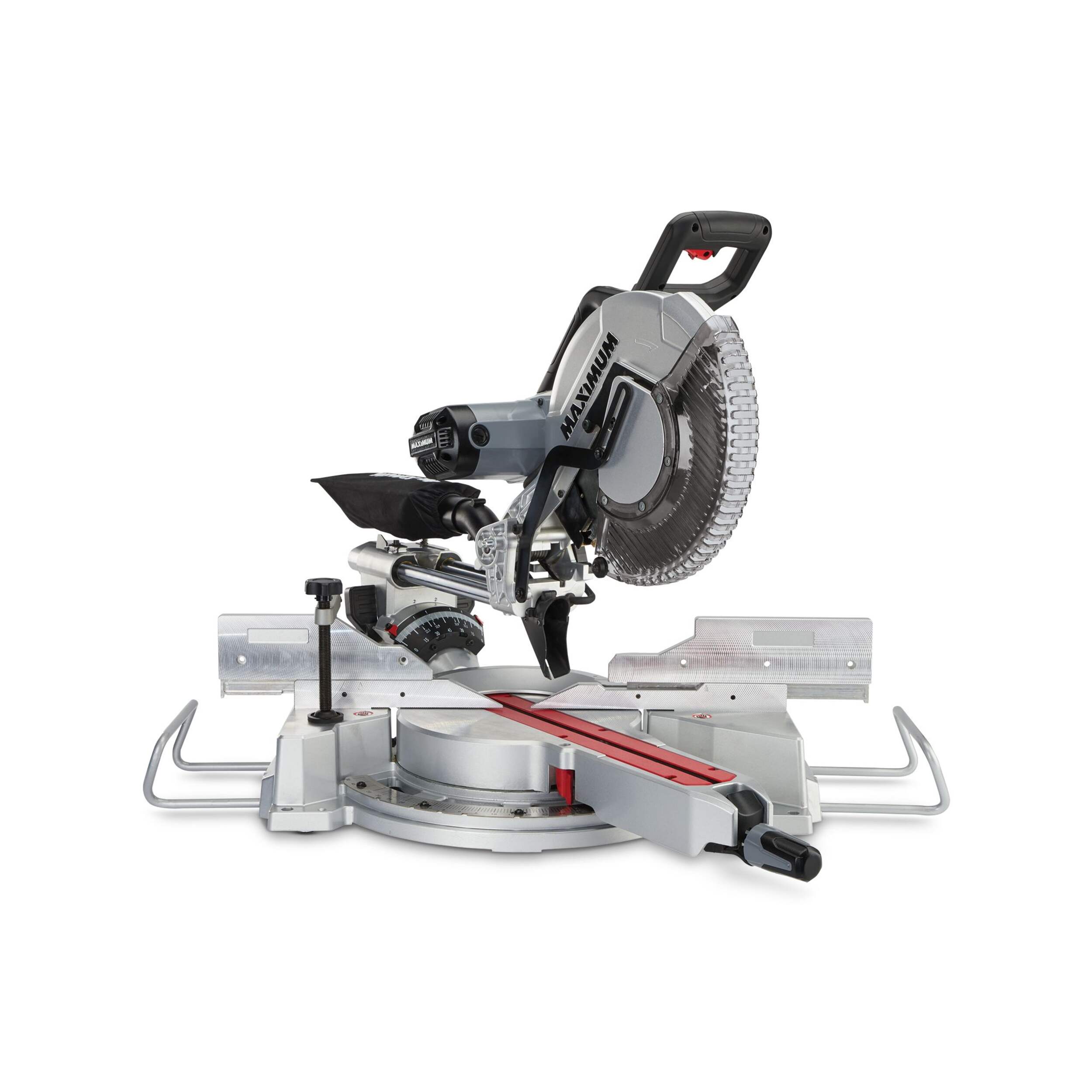 La scie à onglets combinée coulissante MAXIMUM à double biseau est conçue pour la précision et la commodité, ce qui la rend idéale pour les projets ambitieux. Sa ligne d'ombrage à DEL offre une ligne de coupe claire, assurant une précision à tout coup. Avec une grande capacité de coupe, elle est idéale pour les moulures couronnées de 7 1/2 po et les plinthes de 6 3/4 po. La plaque crantée d'onglet en acier inoxydable avec 10 crans d'arrêt améliore la productivité, tandis que la commande de cran d'onglet et les réglages à 1 main permettent de régler l'angle rapidement et facilement.