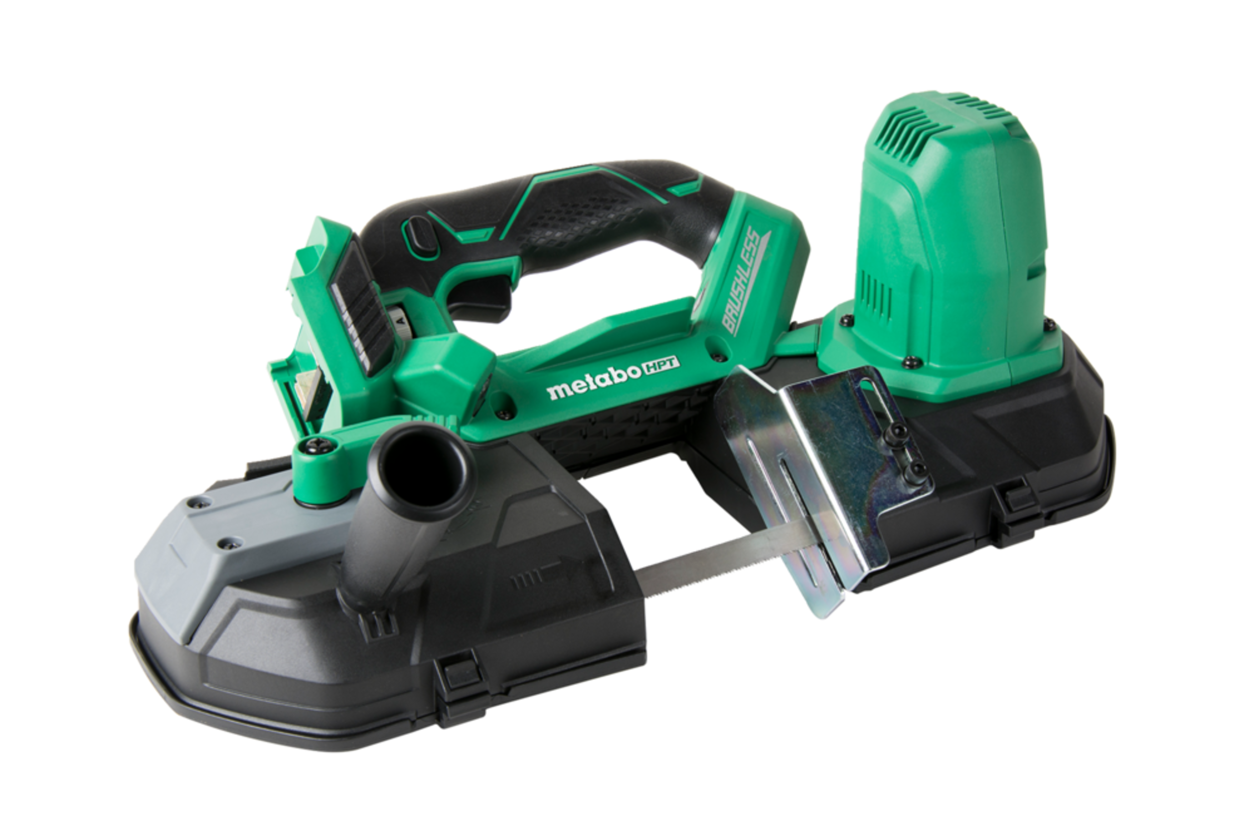 Scie à ruban Metabo HPT sans balais 18 V Li-ion 3 1/4 po (o. seul), idéale pour couper : conduits, tuyaux en acier, câbles d’alimentation, cadres de fenêtre en aluminium et divers plastiques