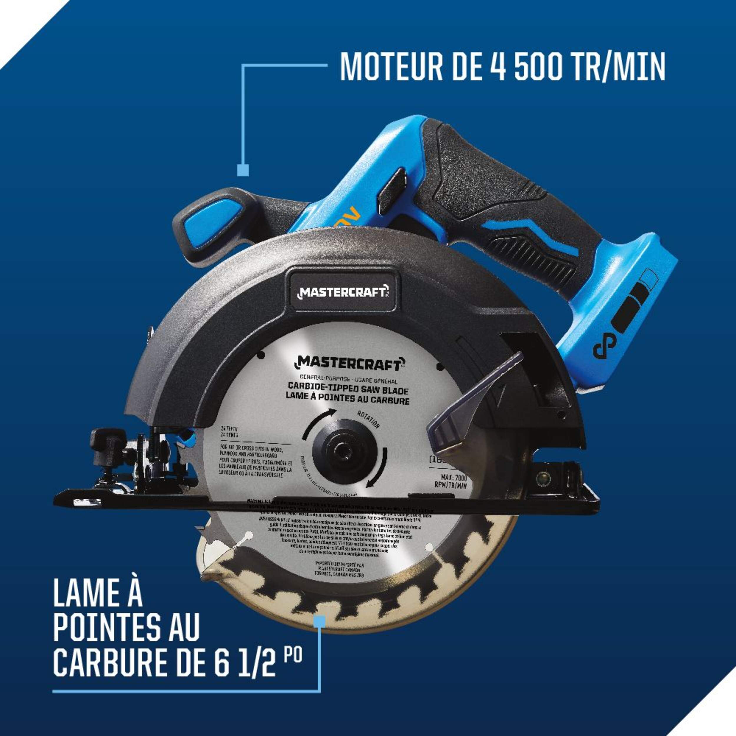 La scie circulaire sans fil Mastercraft 20 V est alimentée par PWR POD, le système de batterie universel par excellence au Canada. PWR POD vous permet d'utiliser la même batterie pour alimenter facilement vos travaux dans la cour, vos rénovations domiciliaires, vos projets automobiles, vos aventures en plein air et plus encore, parmi des marques exclusives comme Mastercraft, Simoniz, Woods et MotoMaster.