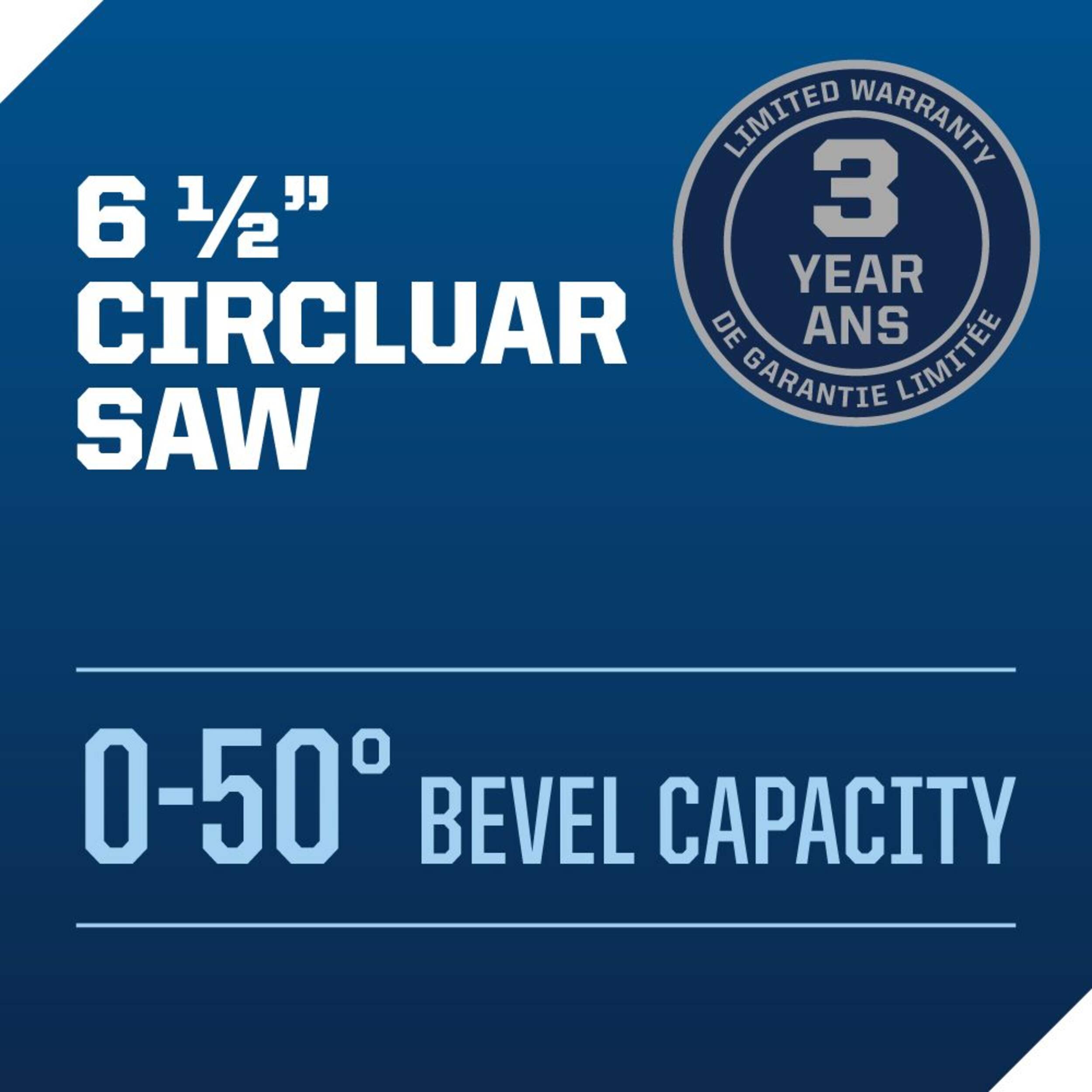 Lame de scie circulaire au carbure avec 24 dents tout usage de 165 mm (6 1/2 po) permettant de faire des coupes fluides à de 54 mm ( 2 1/8 po) à 90 degrés et de 44,5 mm (1 3/4 po à 45 degrés